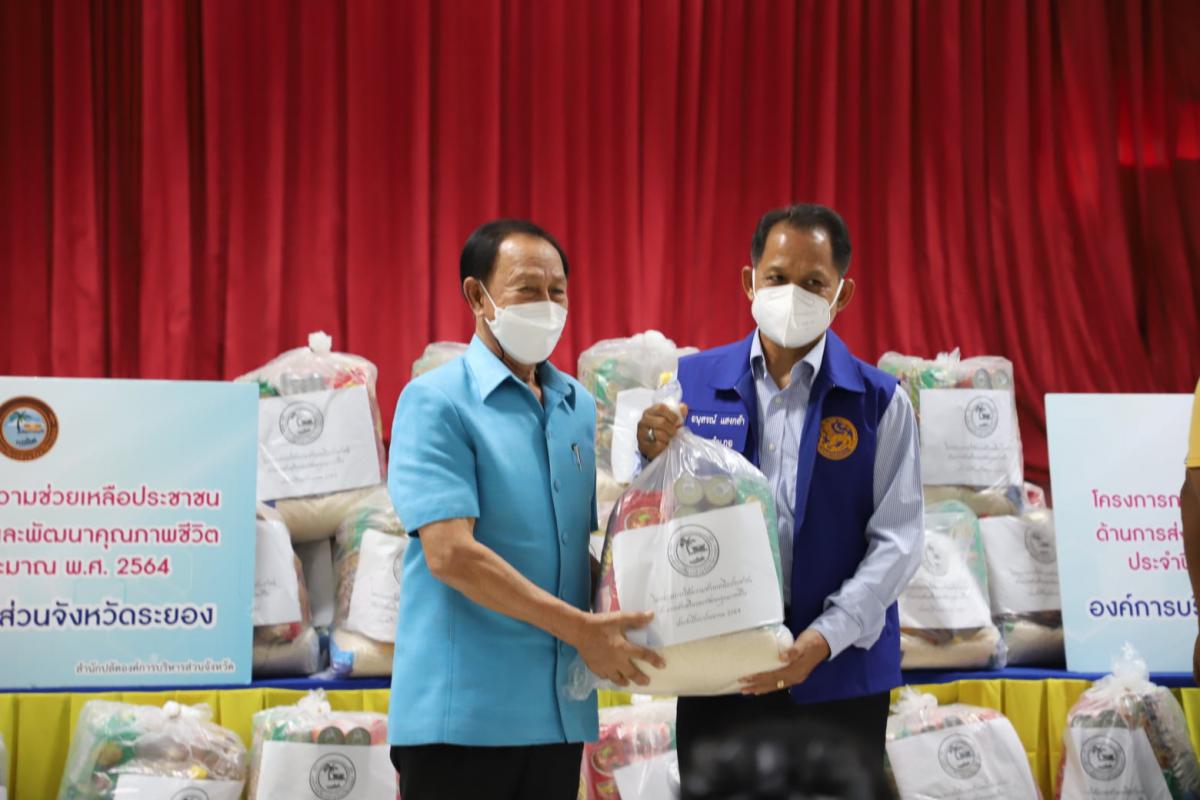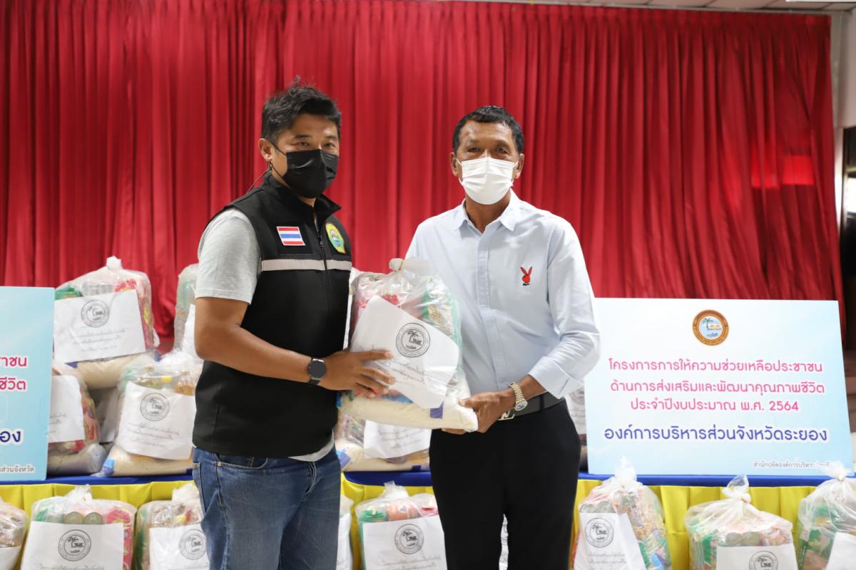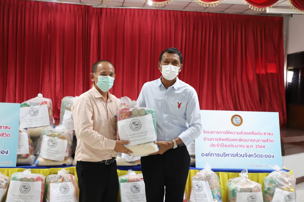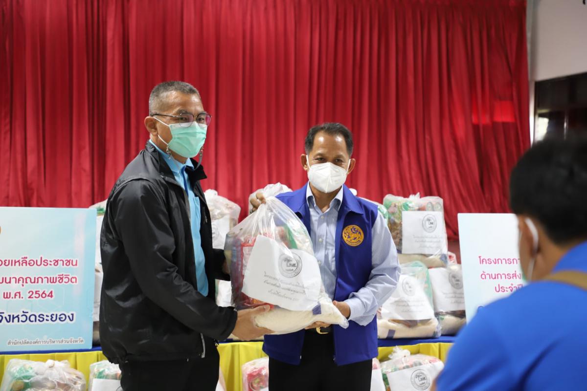 วันศุกร์ที่ 2 กรกฎาคม 2564 เวลา 14.00 น. ณ ที่ว่าการอำเภอแกลง นายแพทย์ชัยวัฒน์ จัตตุพร และนายจรัญ ความเพียร เลขนุการองค์การบริหารส่วนจังหวัดระยอง สมาชิกสภาองค์การบริหารส่วนจังหวัดระยอง อำเภอแกลง พร้อมด้วย นายอนุสรณ์ แสงกล้า นายอำเภอแกลง ร่วมมอบถุงอุปโภค – บริโภค จำนวน 2,370 ถุง ทั้งหมด 17 แห่ง ให้แก่องค์กรปกครองส่วนท้องถิ่นในพื้นที่อำเภอแกลง จังหวัดระยอง โดยมีวัตถุประสงค์ เพื่อช่วยเหลือเยียวยา ฟื้นฟูหลังเกิดสาธารณภัย และส่งเสริมคุณภาพชีวิต ด้านการป้องกันและโรคติดต่อ เพื่อช่วยเหลือเกษตรกรผู้มีรายได้น้อย และเพื่อเป็นการสนับสนุนนโยบายขององค์การบริหารส่วนจังหวัดระยองในการแก้ไขปัญหาความยากจนและบรรเทาภาระค่าใช้จ่ายในการครองชีพให้แก่ประชาชนในระยะเวลาหนึ่ง