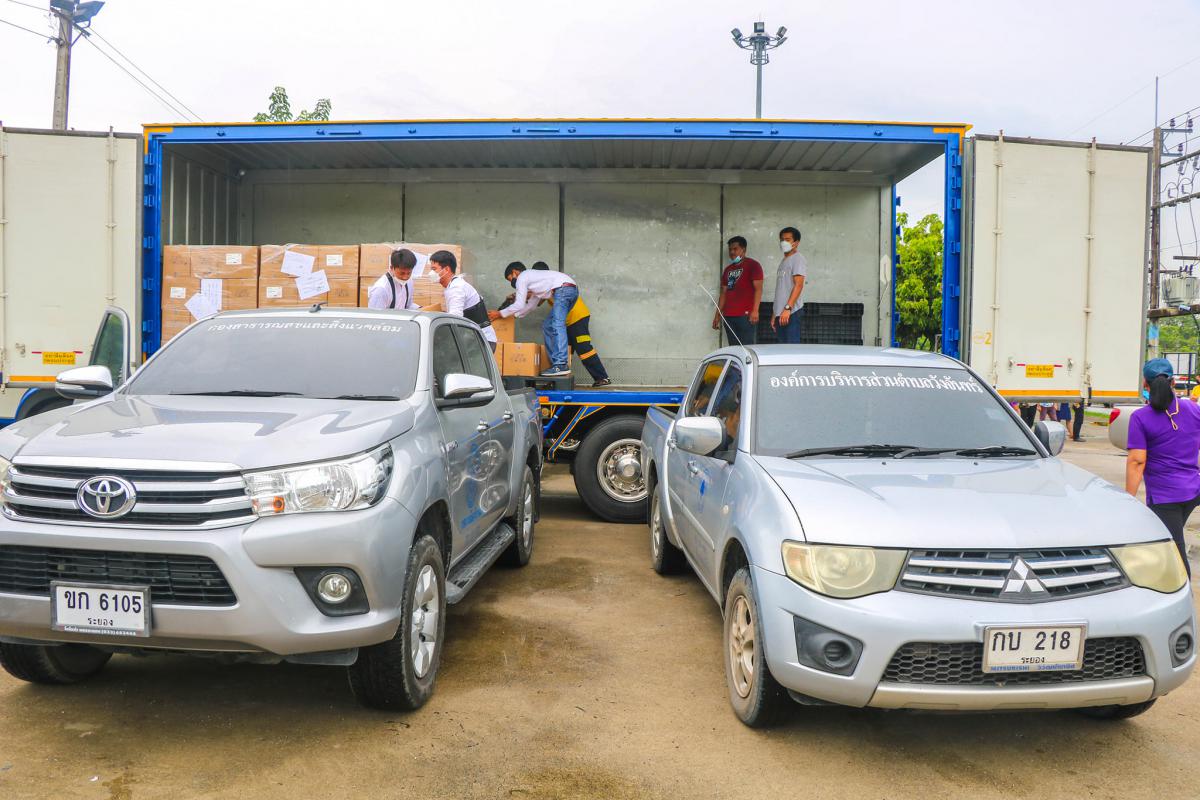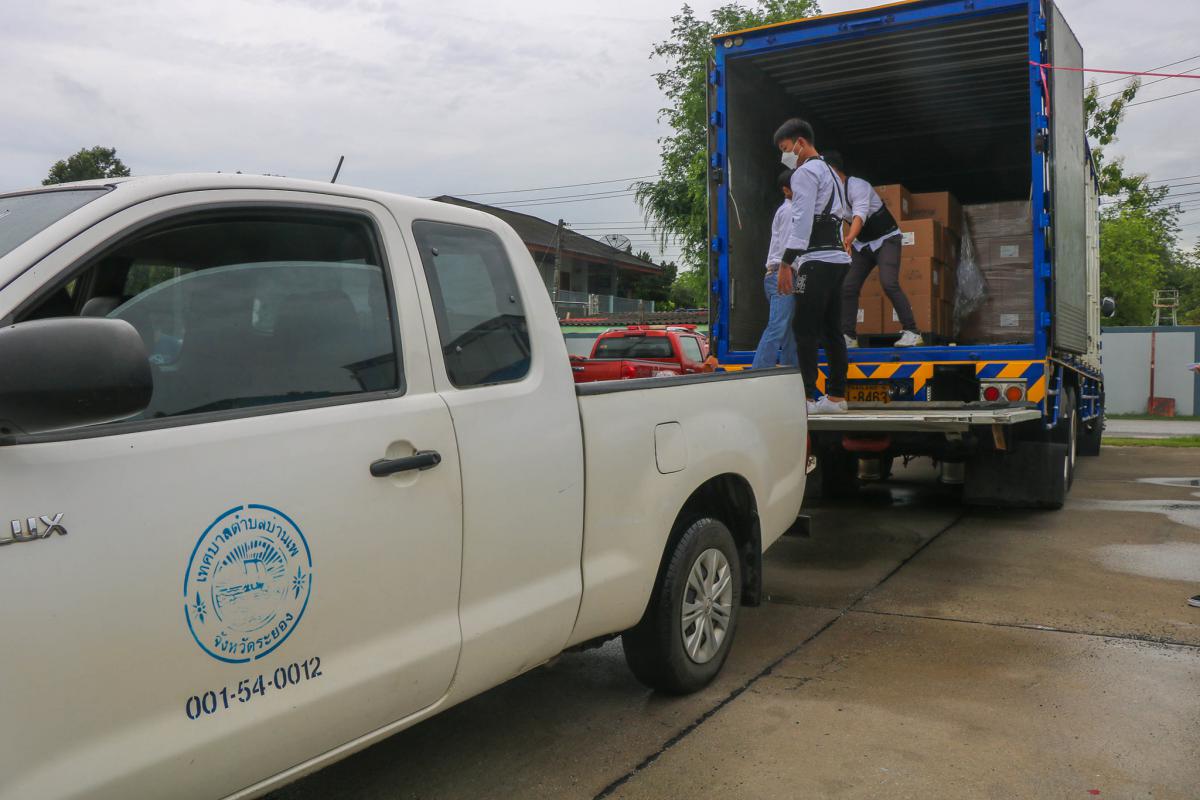 เวลา 9.00 น. (15 ก.ค. 64) นายสุรินทร์ แสงทอง รองปลัด อบจ.ระยอง (1) และนายสมศักดิ์ เกตุสาคร รองปลัด อบจ.ระยอง (2) พร้อมทั้งเจ้าหน้าที่กองสาธารณสุข อบจ.ระยอง มอบน้ำยาฆ่าเชื้อให้กับองค์กรปกครองส่วนท้องถิ่นที่อยู่ในจังหวัดระยอง จำนวน 65 แห่งๆละ 15 แกลลอน (60 ลิตร) เพื่อนำไปแจกจ่ายให้กับประชาชนในพื้นที่ของตนเอง ซึ่งในขณะนี้จังหวัดระยองมีการแพร่ระบาดของโรคไวรัสโคโรนา 2019 และยังคงอยู่ในสถานการณ์ที่น่าเป็นห่วง อีกทั้งยังเป็นพื้นที่ที่มีการระบาดค่อนข้างสูง อบจ.ระยอง จึงอยากให้ประชาชนชาวระยอง เว้นระยะห่าง สวมหน้ากาก หมั่นล้างมือ ตรวจวัดอุณหภูมิ และใช้แอปพลิเครชั่นไทยชนะ/หมอชนะ ทุกครั้งที่ไปสถานที่เสี่ยง