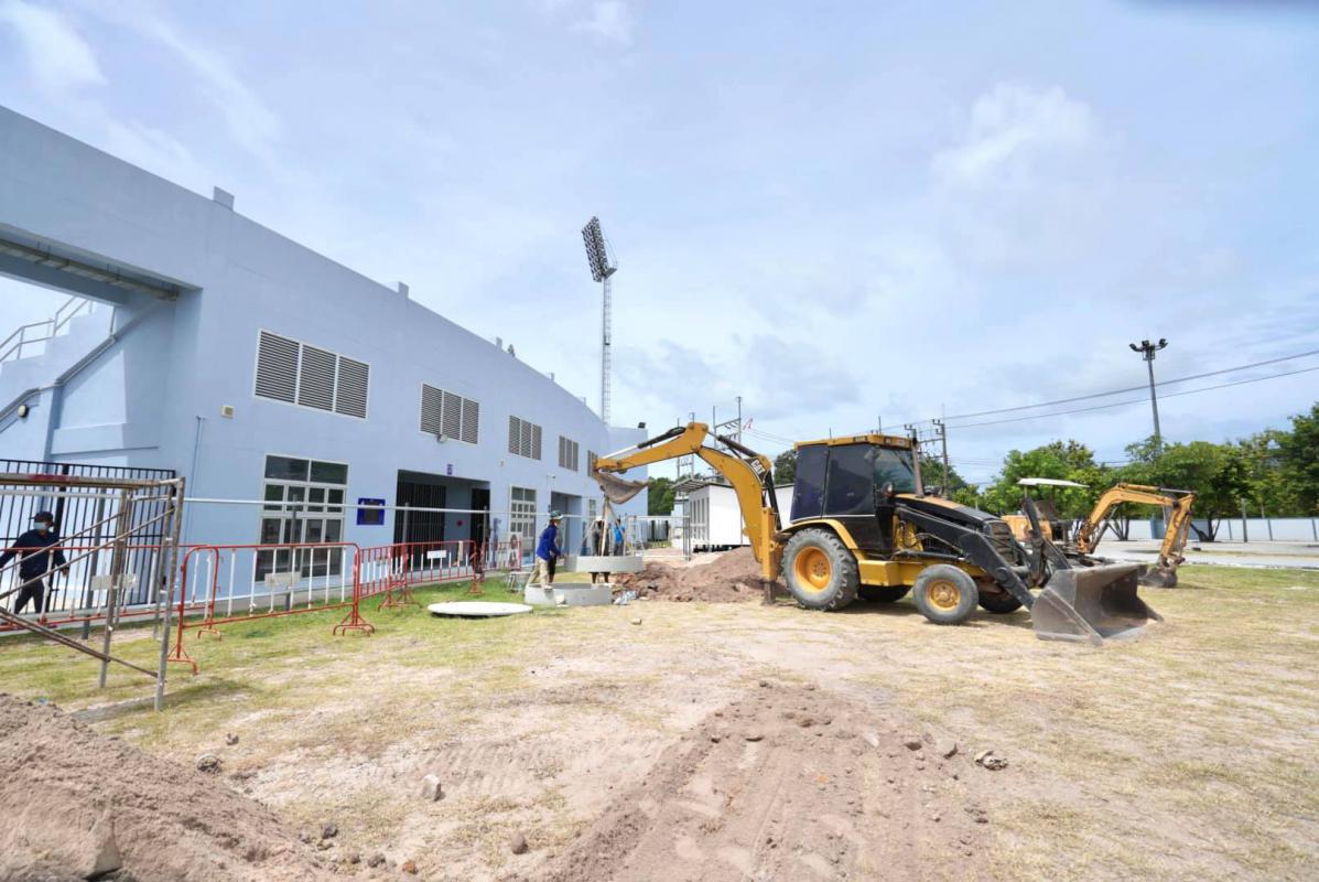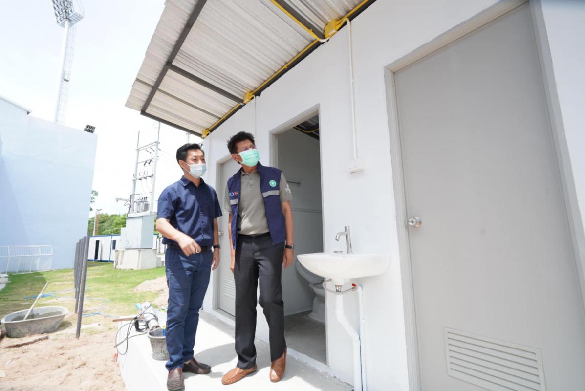 ลงพื้นที่ดูความพร้อมการก่อสร้างโรงพยาบาลสนามอัฒจันทร์สนามกีฬา