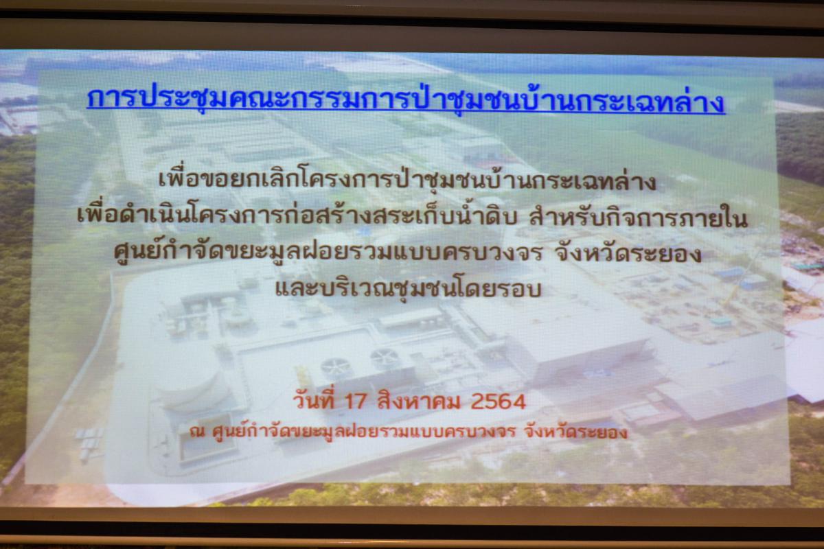 วันที่ 17 สิงหาคม 2564 เวลา 9.30 น. นายปิยะ ปิตุเตชะ นายกองค์การบริหารส่วนจังหวัดระยอง “ประชุมคณะกรรมการป่าชุมชนบ้านกระเฉทล่าง” ณ ศูนย์กำจัดขยะมูลฝอยรวมแบบครบวงจรฯ เพื่อขอยกเลิกโครงการป่าชุมชนบ้านกระเฉทล่าง เพื่อดำเนินโครงการก่อสร้างสระเก็บน้ำดิบ สำหรับกิจการภายในศูนย์กำจัดขยะมูลฝอยรวมแบบครบวงจร จังหวัดระยอง และปรับพื้นที่ในการพัฒนาศูนย์กำจัดขยะฯ โดยคณะกรรมการป่าชุมชนบ้านกระเฉทล่าง มีมติเห็นชอบโครงการดังกล่าว