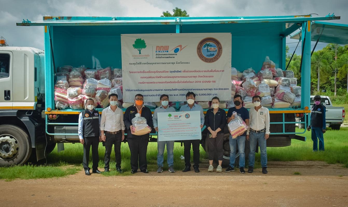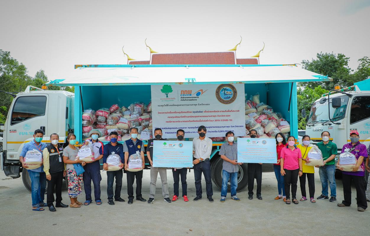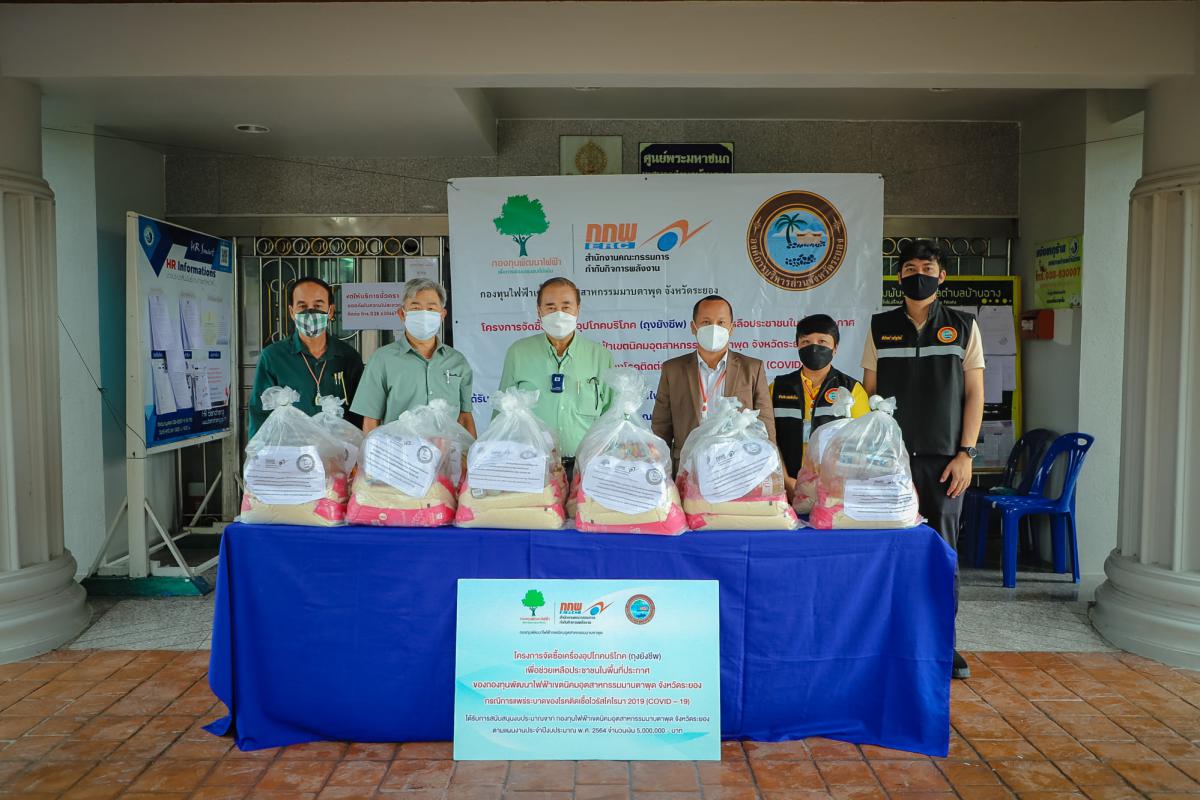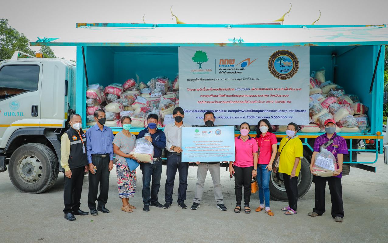 กองทุนไฟฟ้าเขตนิคมอุตสาหกรรมมาบตาพุด จังหวัดระยอง ร่วมกับองค์การบริหารส่วนจังหวัดระยอง จัดทำโครงการจัดซื้อเครื่องอุปโภคบริโภค(ถุงยังชีพ) เพื่อช่วยเหลือประชาชนในพื้นที่ประกาศกองทุนพัฒนาไฟฟ้าเขตอุตสาหกรรมมาบตาพุด จังหวัดระยอง กรณีการแพร่ระบาดของโรคติดต่อเชื้อไวรัสโคโรนา 2019 (COVID-19) โดยได้รับการสนับสนุนงบประมาณจาก กองทุนไฟฟ้าเขตนิคมอุตสาหกรรมมาบตาพุด จังหวัดระยองตามแผนงานประจำปีงบประมาณ พ.ศ. 2564 จำนวนเงิน 5,000,000 บาท ระหว่างวันที่ 10 – 15 กันยายน 2564 จำนวนทั้งสิ้น 9,090 ถุง