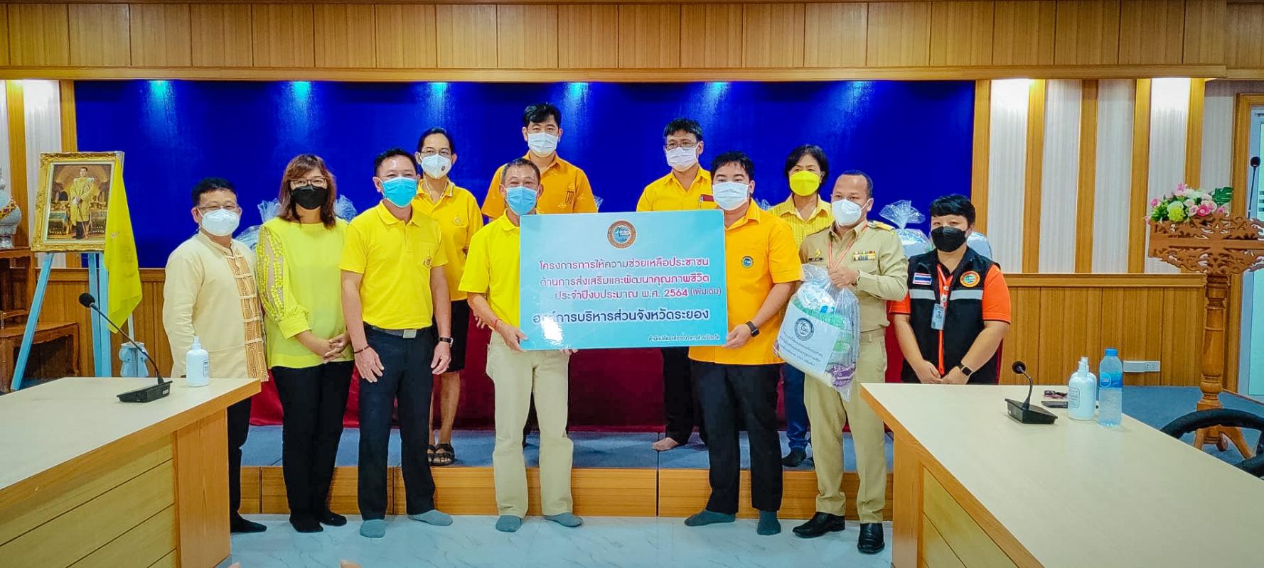 องค์การบริหารส่วนจังหวัดระยองได้จัดทำโครงการการให้ความช่วยเหลือประชาชนด้านการส่งเสริมและพัฒนาคุณภาพชีวิต(มอบถุงอุปโภคบริโภค) ประจำปีงบประมาณ พ.ศ. 2564 (เพิ่มเติม) โดยฝ่ายป้องกันและบรรเทาสาธารณภัย สำนักปลัดองค์การบริหารส่วนจังหวัด ในวันที่ 14 กันยายน 2564 ณ เทศบาลตำบลชำฆ้อ, เทศบาลตำบลบ้านปลวกแดง และเทศบาลตำบลสำนักท้อน จำนวนทั้งสิ้น 460 ถุง