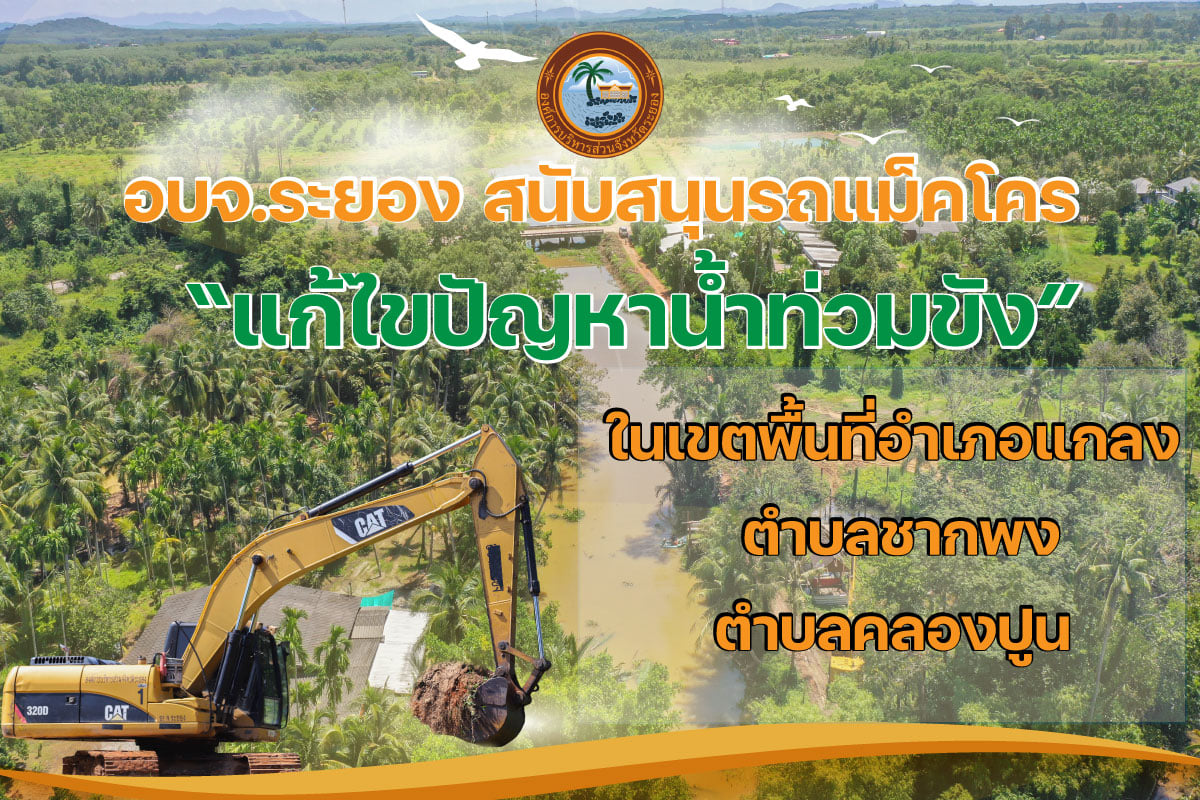 เนื่องด้วยในช่วงนี้เกิดฝนตกหนักทำให้น้ำท่วมขังในพื้นที่เขตอำเภอแกลง ตำบลชากพงและตำบลคลองปูน หลายหมู่บ้านได้รับผลกระทบจากปัญหาน้ำท่วมขังทางองค์การบริหารส่วนจังหวัดระยอง นำโดย นายก’ช้าง ปิยะ ปิตุเตชะ นายกอบจ.ระยอง พร้อมคณะผู้บริหาร สมาชิกสภาองค์บริหารส่วนจังหวัดระยองแต่ละเขตได้รับการประสานจากผู้นำท้องถิ่นในพื้นที่หลายๆแห่งให้สนับสนุนเครื่องจักรกลเข้าไปเปิดทางระบายน้ำและขุดลอกคลองเพื่อให้การระบายน้ำลงแม่น้ำ ลำคลอง ระบายออกสู่ทะเลได้เร็วยิ่งขึ้น อบจ.ระยอง จึงได้รีบดำเนินการสนับสนุนรถแม็คโครเพื่อแก้ไขปัญหาน้ำท่วมขังในพื้นที่ตำบลชากพงและตำบลคลองปูน อำเภอแกลง จังหวัดระยอง