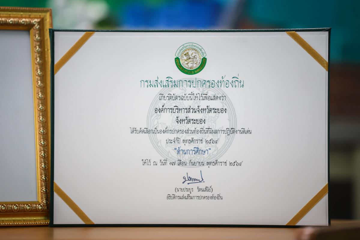 อบจ.ระยองรับรางวัล ดีเด่น ด้านการศึกษา จากกรมส่งเสริมการปกครองส่วนท้องถิ่น ประจำปี พ.ศ. 2564