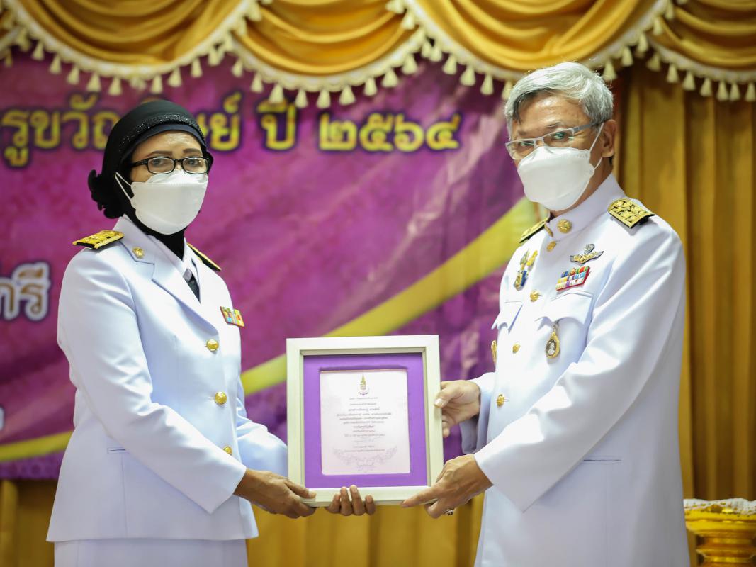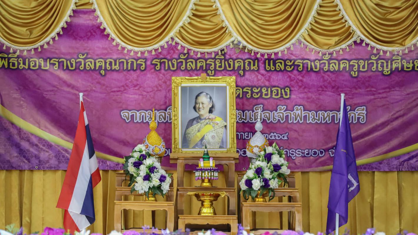 วันที่ 3 พฤศจิกายน 2564 เวลา 10.00 น. ณ ห้องประชุมสหกรณ์ออมทรัพย์ครูระยอง จำกัด ต.เชิงเนิน อ.เมือง จ.ระยอง นายชาญนะ เอี่ยมแสง ผู้ว่าราชการจังหวัดระยอง เป็นประธานในพิธีมอบรางวัลคุณากร รางวัลครูยิ่งคุณ และรางวัลครูขวัญศิษย์ ปี 2564 จังหวัดระยอง ของมูลนิธิรางวัลสมเด็จเจ้าฟ้ามหาจักรี ให้แก่ นางสาวพนิตนาฏ ลายสังข์ ครูชำนาญการพิเศษ โรงเรียนบ้านยางเอน สำนักงานเขตพื้นที่การศึกษาประถมศึกษาระยอง เขต 2 ต.ห้วยทับมอญ อ.เขาชะเมา โดยมี นายประสานต์ พฤกษาชาติ รองนายกองค์การบริหารส่วนจังหวัดระยอง (2) สิบโทไชยยันต์ เกิดเหมาะ ศึกษาธิการจังหวัดระยอง พร้อมด้วย ผู้บริหารสถานศึกษา หัวหน้าส่วนราชการ เข้าร่วมพิธีอย่างพร้อมเพรียง