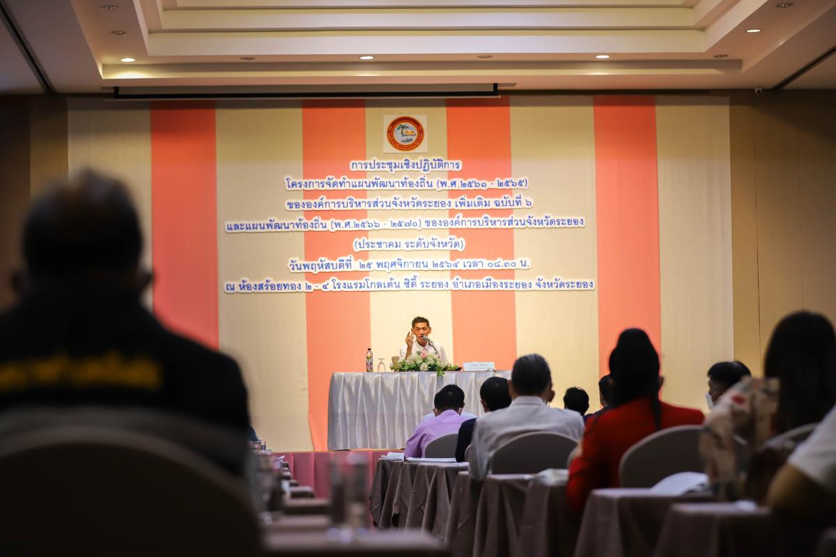 วันที่ 25 พฤศจิกายน 2564 เวลา 09.30 น. องค์การบริหารส่วนจังหวัดระยอง โดยกองยุทธศาสตร์และงบประมาณจัด โครงการจัดทำแผนพัฒนาท้องถิ่น (พ.ศ.2561-2565) เพิ่มเติม ฉบับที่ 6 และแผนพัฒนาท้องถิ่น (พ.ศ.2566-2570) ของ องค์การบริหารส่วนจังหวัดระยอง ครั้งที่ 6/2564 (ระดับจังหวัด) โดยมี นายปิยะ ปิตุเตชะ นายกองค์การบริหารส่วนจังหวัดระยอง เป็นประธานเปิดโครงการ พร้อมด้วย นายมนตรี ชนะชัยวิบูลวัฒน์ ที่ปรึกษานายกอบจ.ระยอง นายอรุณ วิชกิจ ผู้เชี่ยวพิเศษด้านการวางแผนและการวิเคราะห์นโยบาย สมาชิกสภาองค์การบริหารส่วนจังหวัดระยอง ผู้นำองค์กรปกครองส่วนท้องถิ่น ผู้นำชุมชน ประชาคมท้องถิ่น ภาคเอกชน และหน่วยงานที่เกี่ยวข้อง เข้าร่วมงานอย่างพร้อมเพรียง ณ ห้องสร้อยทอง 2-4 โรงแรมโกลเด้น ซิตี้ ระยอง อำเภอเมืองระยอง จังหวัดระยอง