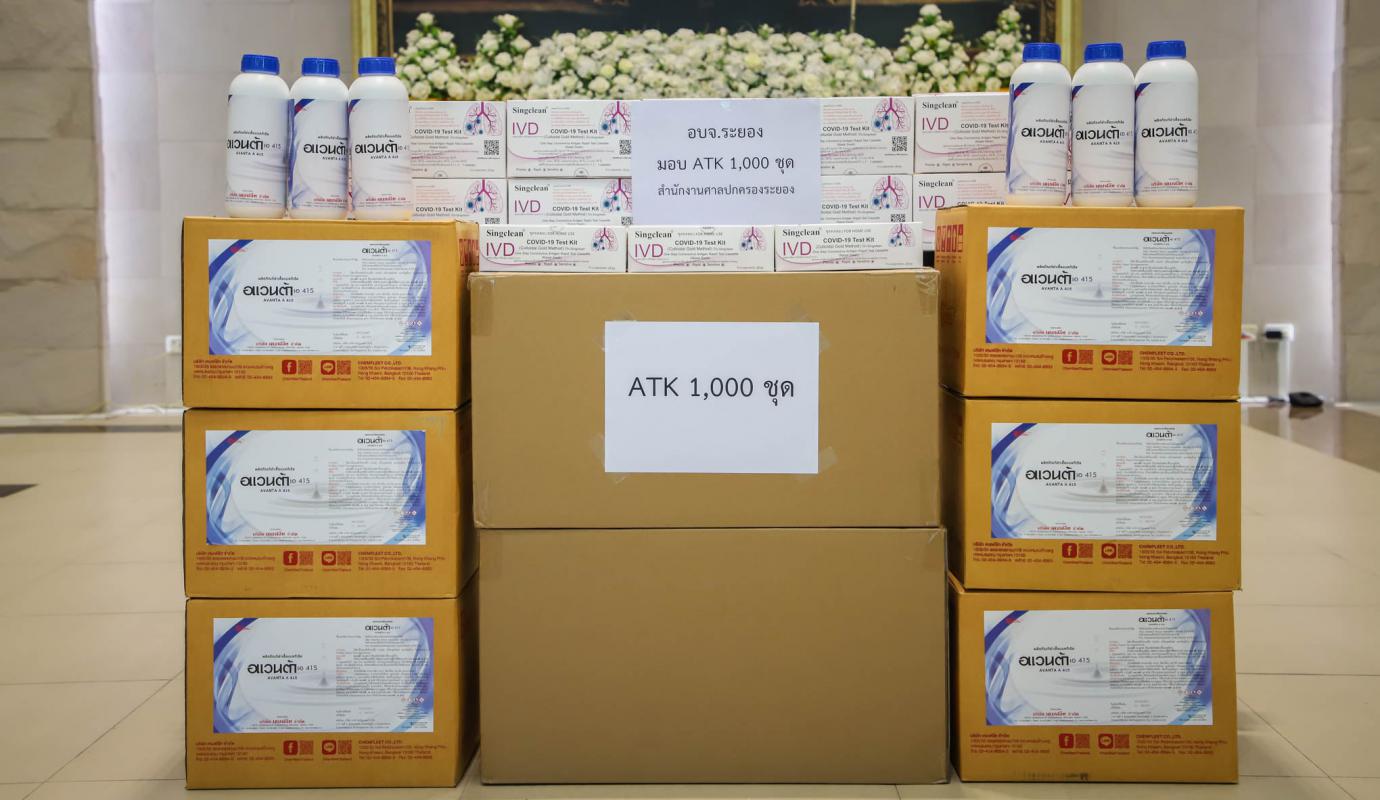 อบจ.ระยอง มอบชุดตรวจ ATK และ น้ำยาฆ่าเชื้อให้กับสำนักงานศาลปกครองระยอง