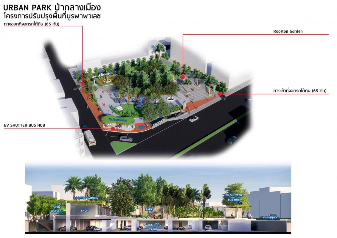5.เพื่อออกแบบและจัดทำรูปแบบรายละเอียดของสิ่งปลูกสร้างที่จำเป็นและส่วนควบในพื้นที่เชื่อมโยงของส่วนอเนกประสงค์การเมือง (Garden In The City)