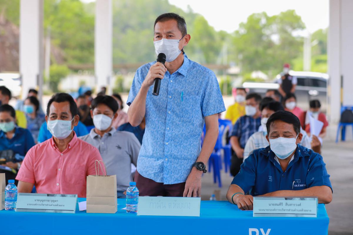 ด้านนายปิยะ ปิตุเตชะ กล่าวว่า “อบจ.ระยอง ได้ตระหนักถึงสภาพปัญหาขยะมูลฝอยในพื้นที่จังหวัดระยองที่มีปริมาณเพิ่มขึ้นอย่างต่อเนื่อง จึงได้จัดทำโครงการเพิ่มประสิทธิภาพการบริหารจัดการขยะมูลฝอยศูนย์อำเภอแกลงขึ้น เพื่อเพิ่มประสิทธิภาพเชื้อเพลิง RDF ที่เข้าโรงไฟฟ้าโดยการคัดแยกขยะมูลฝอยก่อน เพื่อลดความชื้นของเชื้อเพลิง RDF ทำให้โรงไฟฟ้าสามารถเดินระบบได้อย่างมีประสิทธิภาพ เป็นไปตามหลักสุขาภิบาล และได้มาตรฐานคุณภาพสิ่งแวดล้อม สามารถรองรับการขยายตัวของเมืองที่จะเกิดขึ้นอย่างรวดเร็วในอนาคตภายใต้เขตพัฒนาพิเศษภาคตะวันออก (EEC) ตามนโยบายของรัฐบาล และเป็นต้นแบบของศูนย์การเรียนรู้ด้านการจัดการขยะที่ครบวงจรของประเทศ ซึ่ง อบจ.ระยอง ยังได้เตรียมพื้นที่ที่พัฒนาในระยะต่อไปอีก รวม 65 ไร่เศษ ให้ได้มาตรฐานสากล ซึ่งโครงการนี้ได้รับงบสนับสนุนภายใต้แผนปฏิบัติการเพื่อการจัดการคุณภาพสิ่งแวดล้อมในระดับจังหวัด ด้วยงบประมาณ 230,500,000 บาท ซึ่งการประชุมในวันนี้มีการนำเสนอรายละเอียดของโครงการฯ และการรับฟังความคิดเห็นข้อเสนอแนะจากผู้เข้าร่วมประชุม และมีการลงประชามติ มีผลรับรองว่าเห็นด้วยกับโครงการฯ ดังกล่าว ภายในงานยังมี นายวิเชียร แสงวงศ์กิจ นายกสมาคมกีฬาแห่งจังหวัดระยอง, นายบุญธรรม บุญมา นายกองค์การบริหารส่วนตำบลห้วยยาง, นายสมคีรี สืบสารวงศ์ รองนายกองค์การบริหารส่วนตำบลห้วยยาง, สิบตำรวจตรีบุญเลิศ จันดี ปลัดองค์การบริหารส่วนตำบลห้วยยาง, นายอภิรักษ์ สุนทรเวชพงศ์ กำนันตำบลห้วยยาง, และประชาชน เข้าร่วมจำนวน 60 คน