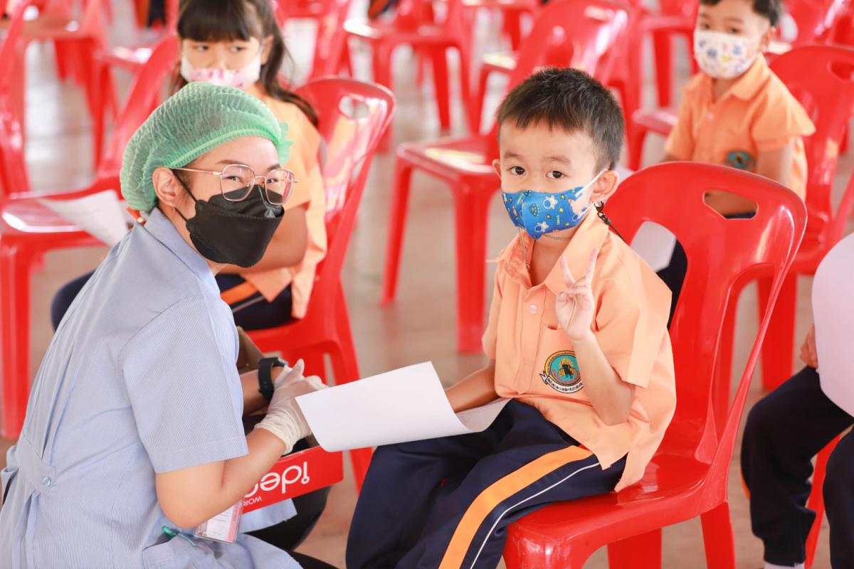 วันที่ 8 เมษายน 2565 กองสาธารณสุข อบจ.ระยอง ร่วมกับ โรงพยาบาลบ้านค่าย ให้บริการฉีดวัคซีนแก่เด็กนักเรียนระดับชั้นอนุบาลและระดับชั้นประถมโรงเรียนอนุบาลนานาชาติตากสินบ้านค่าย (วัดหวายกรอง) ในช่วงอายุ 5-11 ปี ซึ่งเป็นวัคซีน Pfizer เพื่อป้องกันเชื้อไวรัสโควิด -19 เข็มที่ 1 ณ หอประชุมโดม โรงเรียนอนุบาลนานาชาติตากสินบ้านค่าย (วัดหวายกรอง)