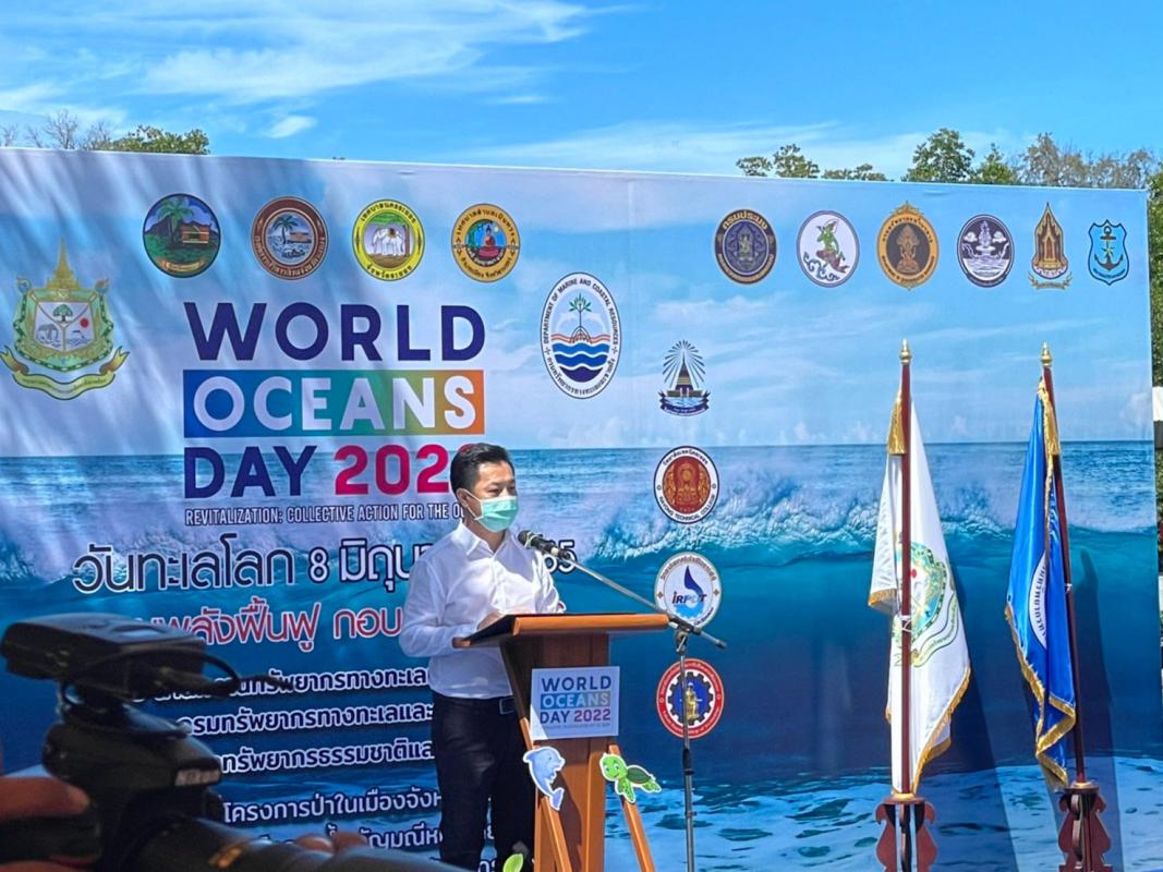 วันที่ 8 มิถุนายน 2565 เวลา 10.30 น. ณ ป่าในเมืองพระเจดีย์กลางน้ำ ต.ปากน้ำ อ.เมือง จ.ระยอง ว่าที่ร้อยตรีพิรุณ เหมะรักษ์ รองผู้ว่าราชการจังหวัดระยอง เป็นประธานเปิดงานวันทะเลโลก "รวมพลังฟื้นฟู กอบกู้มหาสมุทร" โดยมี นายกิตติ เกียรติ์มนตรี รองนายกองค์การบริหารส่วนจังหวัดระยอง (1) นายภุชงค์ สฤษฎีชัยกุล ผอ.สำนักงานทรัพยากรทางทะเลและชายฝั่งที่ 1 นายนรินทร์ เจนจิรวัฒนา รองนายกเทศมนตรีนครระยอง ภาครัฐและภาคเอกชน เข้าร่วมงานอย่างพร้อมเพรียง นายภุชงค์ สฤษฎีชัยกุล ผอ.สำนักงานทรัพยากรทางทะเลและชายฝั่งที่ 1 กล่าวว่าในปี2553 องค์การสหประชาชาติ ได้กำหนดอย่างเป็นทางการ ให้วันที่ 8 มิ.ย.ของทุกปีเป็นวันทะเลโลกเพื่อการเฉลิมฉลอง และกระตุ้นจิตสำนึกให้คนทั้งโลก หันมาใส่ใจร่วมกันอนุรักษ์ท้องทะเล โดยปี 2565 กำหนดทุกวันที่ 8 มิ.ย. ของทุกปี กรมทรัพยากรทางทะเลและชายฝั่ง ซึ่งมีหน้าที่ในการบริหารจัดการ อนุรักษ์ และฟื้นฟูทรัพยากรทางทะเลและชายฝั่ง จึงได้มีการจัดกิจกรรมเนื่องใน วันทะเลโลกอย่างต่อเนื่องเพื่อเป็นการเฉลิมฉลอง และแสดงบทบาทของประเทศไทย ในระดับสากล พร้อมทั้งเป็นการรณรงค์ ปลูกจิตสำนึกของคนไทยให้หันมาใส่ใจ ร่วมกันอนุรักษ์ทะเลไทยให้ยั่งยืน จากนโยบายรัฐบาล และความมุ่งมั่นของกระทรวงทรัพยากรธรรมชาติและสิ่งแวดล้อมที่จะจัดการแก้ไขปัญหาความเสื่อมโทรมของระบบนิเวศและสิ่งแวดล้อมทางทะเล ดังนั้นในปี2565 นี้ จึงได้จัดงานวันทะเลโลกภายใต้หัวข้อ "รวมพลังฟื้นฟู กอบกู้มหาสมุทร" โดยกระตุ้นให้ทุกคนตระหนักถึงความจำเป็นในความร่วมมือ หรือการเข้ามามีส่วนร่วมอย่างแข็งขันในด้านการฟื้นฟู เพื่อพลิกฟื้นคืนชีวิต คืนสุขภาพให้กับทะเลและมหาสมุทรของเรา