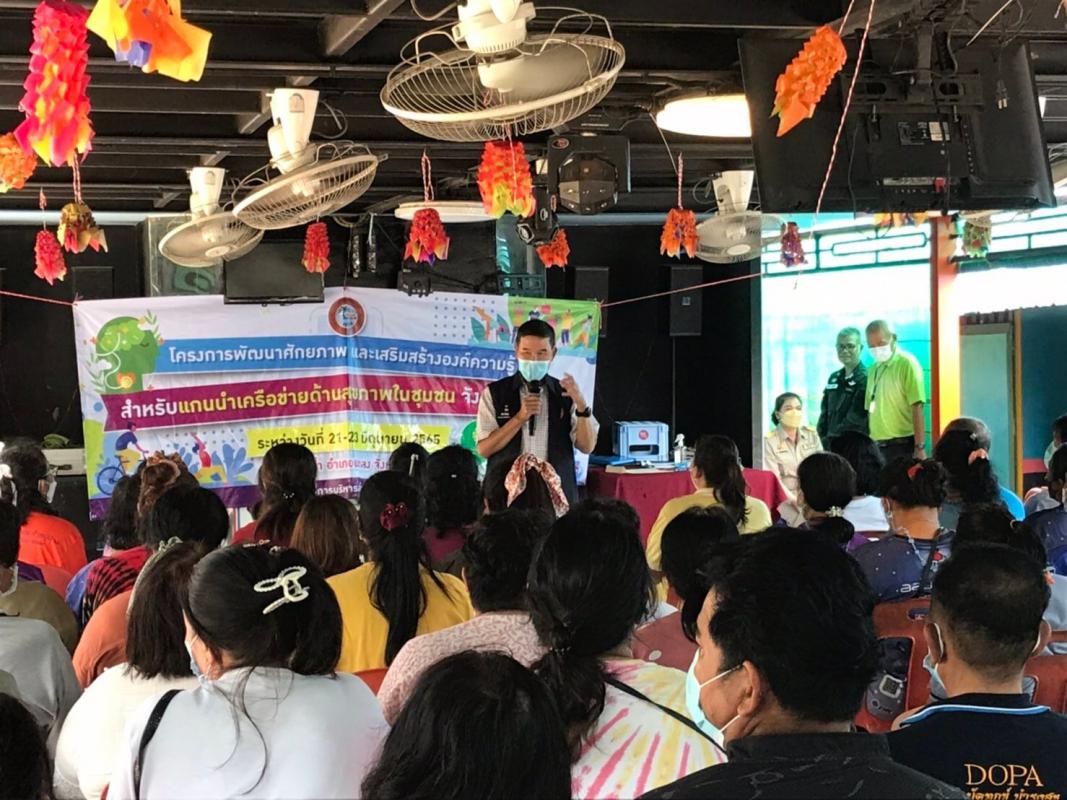 วันที่ 23 มิถุนายน 2565 เวลา 13.30 น. นายแพทย์ชัยวัฒน์ จัตตุพร เลขานุการนายกองค์การบริหารส่วนจังหวัดระยอง เป็นประธานปิด “โครงการพัฒนาศักยภาพและเสริมสร้างองค์ความรู้สำหรับแกนนำเครือข่ายด้านสุขภาพในชุมชนจังหวัดระยอง ประจำปีงบประมาณ พ.ศ. 2565” รุ่นที่ 5 โดยอบรมตั้งแต่วันที่ 21-23 มิถุนายน 2565 จากกลุ่มอาสาสมัครสาธารณสุขอำเภอวังจันทร์ จำนวน 100 คน