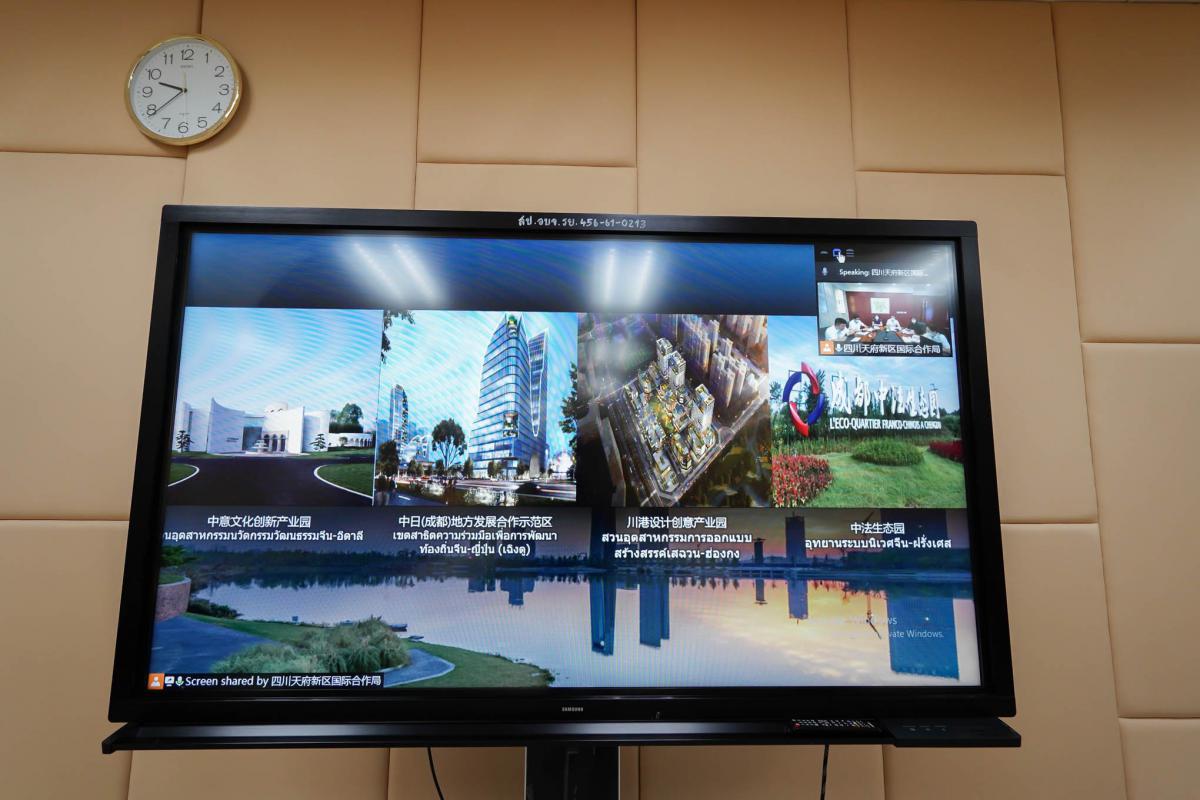 การประชุมทางไกลระหว่างองค์การบริหารส่วนจังหวัดระยอง (ไทย) - กับมณฑลเสฉวน เขตเทียนฝู่เมืองใหม่ (จีน) ซึ่งทั้งสองฝ่ายได้นำเสนอการพัฒนาพื้นที่ทางเศรษฐกิจ การค้าและการลงทุน รวมถึงความร่วมมือระหว่างทั้งสองฝ่ายดังนี้