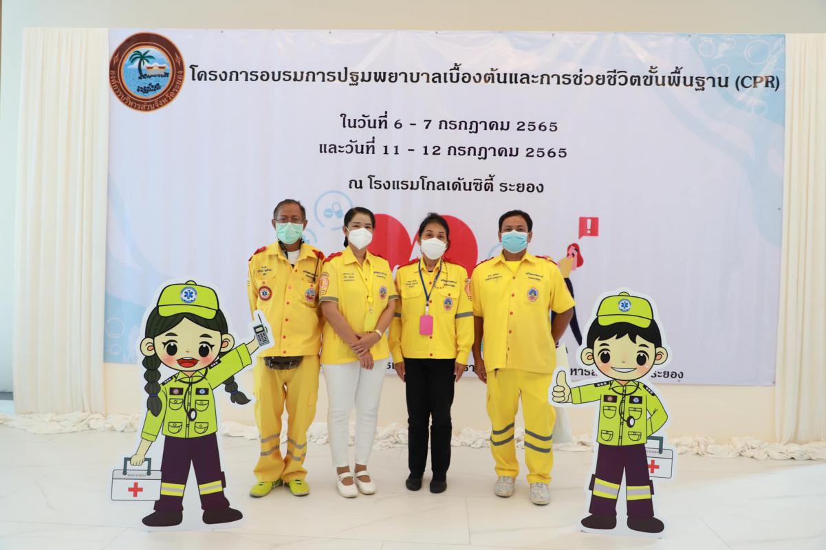 วันที่ 11 กรกฎาคม 2565 เวลา 9.00 น. กองสาธารณะสุข จัดโครงการอบรมปฐมพยาบาลเบื้องต้น และการช่วยชีวิตขั้นพื้นฐาน (CPR) รุ่นที่ 2 ณ ห้องสร้อยทอง โรงแรมโกลเด้น ซิตี้ ระยอง โดยในช่วงเช้าเป็นการรับฟังการบรรยายในหัวข้อ “การปฐมพยาบาลเบื้องต้น (First aid) และการช่วยชีวิตขั้นพื้นฐาน (BLS)” และฝึกปฏิบัติตามฐานในช่วงบ่ายจากแพทย์และทีมงานจากโรงพยาบาลระยอง ซึ่งโครงการในครั้งนี้จัดขึ้นเพื่อให้ผู้เข้าอบรมทุกท่านสามารถให้การปฐมพยาบาลเบื้องต้นและช่วยชีวิตขั้นพื้นฐาน (CPR) ได้อย่างถูกต้อง สามารถใช้เครื่องกระตุ้นไฟฟ้าหัวใจอัตโนมัติในการช่วยเหลือผู้ที่เจ็บป่วยฉุกเฉินได้