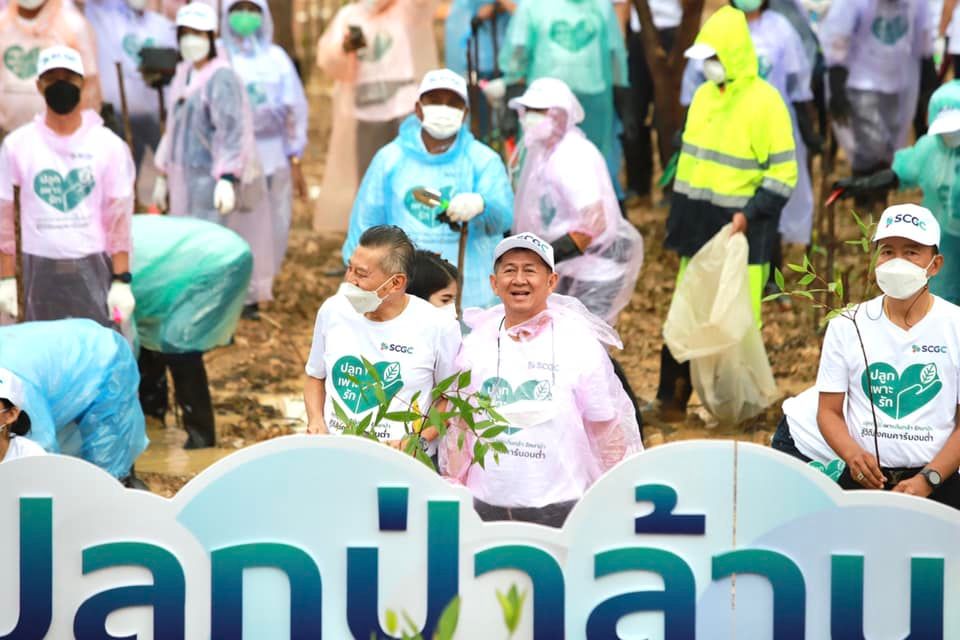 บริษัท เอสซีจีซี เคมิคอลส์ จำกัด (มหาชน) หรือ SCGC ได้ดำเนินธุรกิจควบคู่กับการดูแลสิ่งแวดล้อมอย่างยั่งยืน ตามแนวทาง ESG (Environmental Social and Governance) เพื่อช่วยลดวิกฤติภาวะโลกร้อนและการเปลี่ยนแปลงสภาพภูมิอากาศ รวมทั้งการเพิ่มพื้นที่สีเขียว โดยร่วมมือกับภาครัฐ ภาคประชาสังคม และภาคส่วนต่างๆ ที่เกี่ยวข้อง รวมทั้งจิตอาสา เดินหน้าปลูกต้นไม้ 1 ล้านต้น ด้วยการปลูกป่าชายเลนและป่าบก การเพาะต้นกล้าเพื่อจัดสรรให้พื้นที่ที่ขาดแคลน รวมไปถึงการปลูกป่าในใจคน ด้วยแนวคิดคนดูแลป่า ป่าดูแลคน สู่วิถีสังคมคาร์บอนต่ำตามเป้าหมายของประเทศ เพื่อโลกและสังคมที่ยั่งยืนต่อไป ภายในงานมีการรับชมวิดีทัศน์เกี่ยวกับการดำเนินธุรกิจของ SCGC ควบคู่กับแนวทางในการดูแลสิ่งแวดล้อมอย่างยั่งยืนมีนิทรรศการ “ปลูก เพาะ รัก” และ นิทรรศการจากเครือข่ายชุมชนหลังจากนั้นได้ร่วมกันปลูกต้นไม้จำนวน 1,000 ต้น