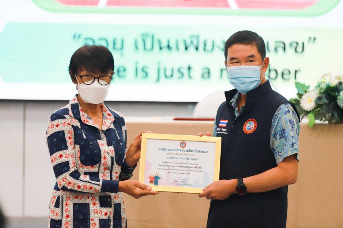 วันที่ 1 กันยายน 2565 เวลา 09.00 น.นายแพทย์ชัยวัฒน์ จัตตุพร เลขานุการนายกองค์การบริหารส่วนจังหวัดระยอง เป็นประธานเปิดโครงการ “สูงวัยสุขภาพดีสู่การมีสุขภาวะดียิ่งขึ้น” ณ โรงแรมเดอะโพเอ็ม อ.แกลง จ.ระยอง โดยมีคณะผู้บริหารจาก อบจ.ระยอง สมาชิกสภาฯ ผู้บริหารจาก อบต.และเทศบาล ในเขตอำเภอแกลงข้าราชการ พนักงาน และผู้เข้าร่วมในพิธีเปิดโครงการมากกว่า 100 คน ซึ่งผู้เข้าร่วมโครงการทุกท่านจะได้รับฟังการบรรยายจากวิทยาผู้ที่มีความรู้ความสามารถเฉพาะทาง โดยมีวิทยากรจากสถาบันเวชศาสตร์สมเด็จพระสังฆราชญาณสังวรเพื่อผู้สูงอายุ กรมการแพทย์ กระทรวงสาธารณสุข ซึ่งบรรยายในหัวข้อเรื่อง “ผู้สูงวัยก้าวทันเทคโนโลยี ดูแลสุขภาพตนเองเบื้องต้นได้ด้วย App.สูงวัย 5G+” และวิทยากรจาก สนง.พัฒนาสังคมและความมั่นคงของมนุษย์จังหวัดระยอง บรรยายในหัวข้อเรื่อง “สิทธิ/สวัสดิการที่ผู้สูงอายุพึงได้รับ”