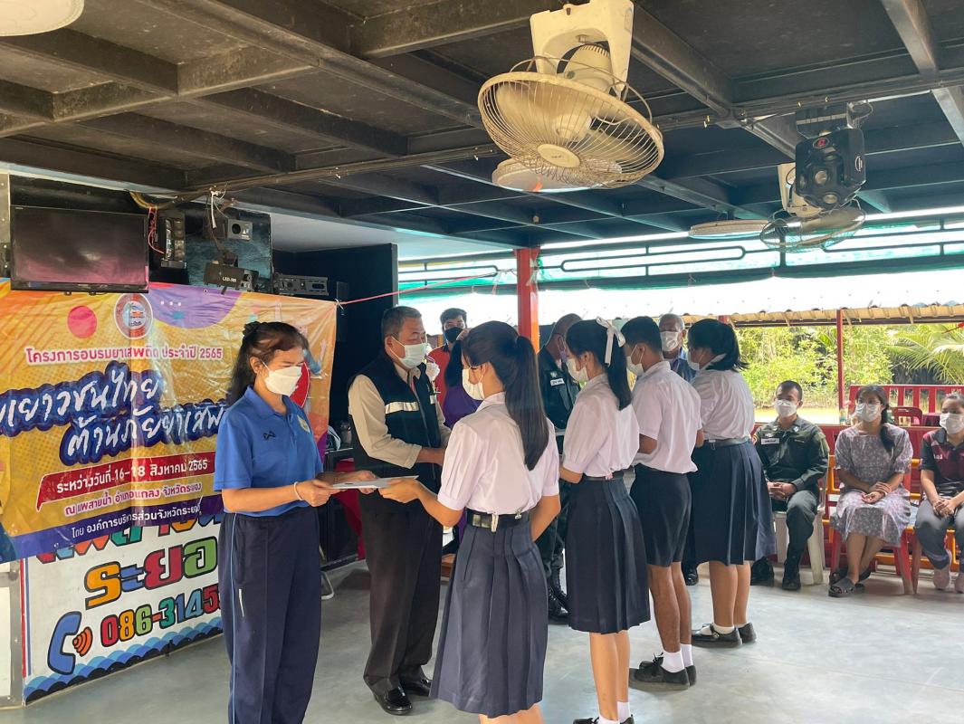 สำนักปลัดองค์การบริหารส่วนจังหวัด ได้จัดทำโครงการยาเสพติด ประจำปี 2565 เพื่อสร้างภูมิคุ้มกันยาเสพติดในกลุ่มนักเรียน เยาวชน และประชาชนไม่ให้ยุ่งเกี่ยวหรือเข้าถึงยาเสพติด ช่วยเสริมสร้างความรู้ความเข้าใจเกี่ยวกับการป้องกันและแก้ไขปัญหายาเสพติดของคนในครอบครัว ชุมชน สถานศึกษา และสังคม และเพื่อให้นักเรียน เยาวชน และประชาชนได้รับรู้และเข้าใจสถานการณ์ยาเสพติด ในระดับชุมชน จังหวัด และประเทศ ณ แพสายน้ำ อำเภอแกลง จังหวัดระยอง ไปแล้วทั้งสิ้น 8 รุ่น รายละเอียด ดังนี้