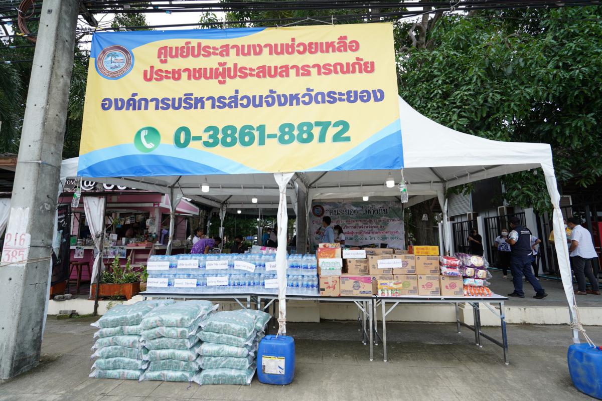 โดยอบจ.ระยอง เปิดศูนย์ประสานงานช่วยเหลือประชาชนนผู้ประสบภัย รับบริจาคสิ่งของ เครื่องใช้ อุปกรณ์ไฟฟ้า ข้าวสาร อาหารแห้ง เสื้อผ้า หมอน ผ้าห่ม เป็นต้น โดยสามารถบริจาคได้ทุกวันไม่เว้นวันหยุดราชการ ตั้งแต่เวลา 07.30 น. - 20.00 น. โดยอบจ.ระยองได้มีการสนับสนุนรถและเครื่องจักรขนาดใหญ่ ลงพื้นที่ไปให้การช่วยเหลือร่วมกับ อปท.พื้นที่ที่ประสบปัญหาน้ำท่วมแล้ว โดยมี ส.อบจ.ระยอง ในแต่ละเขตรับเรื่อง และอำนวยความสะดวกในการให้การช่วยเหลืออย่างเต็มที่ หากประชาชนท่านใดสนใจร่วมบริจาคสิ่งของเครื่องใช้ สามารถมาร่วมบริจาคได้ที่จุดบริการด้านหน้า อบจ.ระยอง ตั้งแต่วันนี้จนถึงวันที่ 22 กันยายน 2565