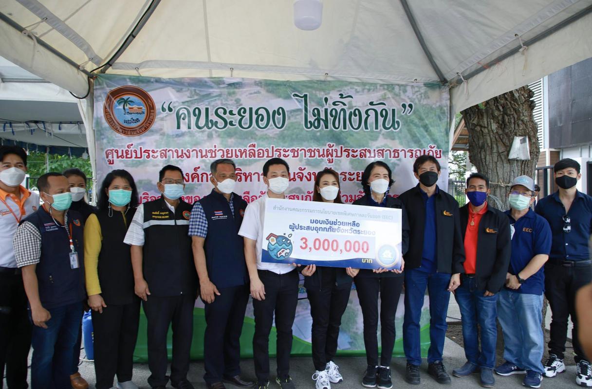 วันที่ 11 กันยายน 2565 เวลา 10.00 น. นายกิตติ เกียรติ์มนตรี รองนายกองค์การบริหารส่วนจังหวัดระยอง(1) พร้อมด้วย นายประสานต์ พฤกษาชาติ รองนายกองค์การบริหารส่วนจังหวัดระยอง(2) นายสมศักดิ์ เกตุสาคร เลขานุการนายกองค์การบริหารส่วนจังหวัดระยอง คณะผู้บริหาร หัวหน้าส่วนข้าราชการ สมาชิกสภาองค์การบริหารส่วนจังหวัดระยอง และผู้ที่เกี่ยวข้องเข้าร่วมแถลงข่าวช่วยเหลือผู้ประสบอุทกภัยและร่วมรับมอบเงินบริจาค กพสอ.(EEC) จำนวน 3 ล้านบาท เพื่อนำไปช่วยเหลือและเยียวยาผู้ประสบอุทกภัยในเขตพื้นที่จังหวัดระยอง