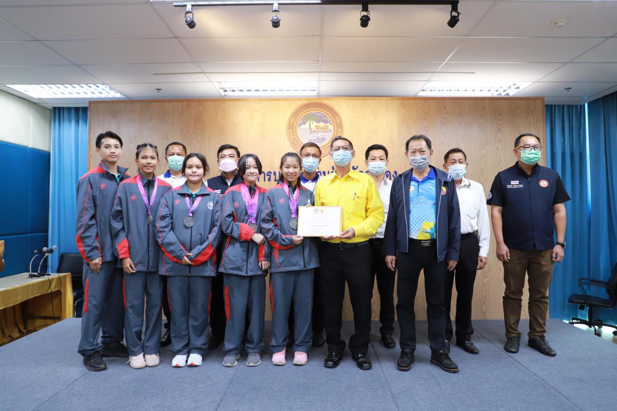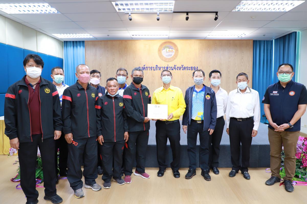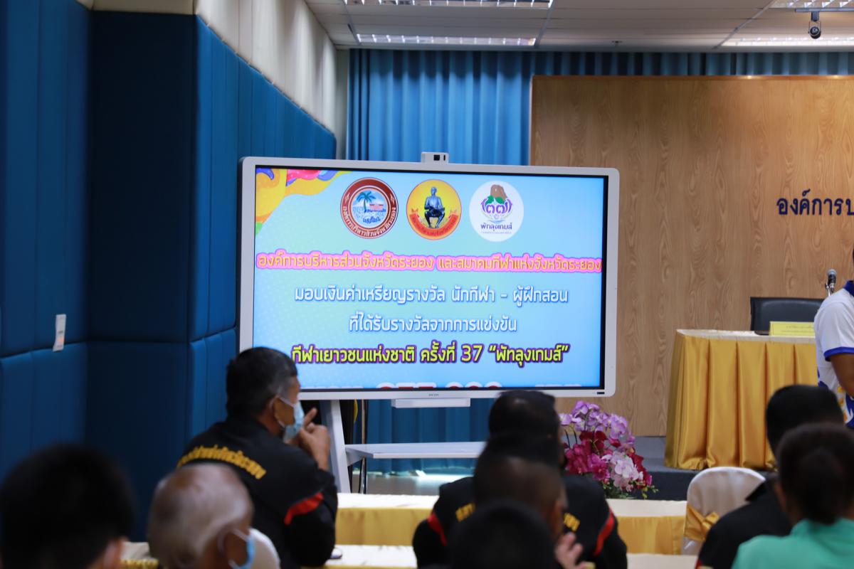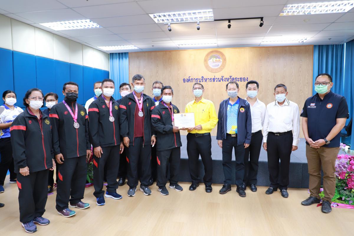 ด้วยสมาคมกีฬาแห่งจังหวัดระยอง ได้เข้าร่วมการแข่งขันกีฬาเยาวชนแห่งชาติ ครั้งที่ 37 "พัทลุงเกมส์" และการแข่งขันกีฬาอาวุโสแห่งชาติ ครั้งที่ 4 "เสกักเกมส์" ณ จังหวัดพัทลุง โดยได้รับการสนับสนุนงบประมาณจากองค์การบริหารส่วนจังหวัดระยอง ให้แก่นักกีฬาและผู้ฝึกสอน และได้ดำเนินการแข่งขันเสร็จสิ้นเป็นที่เรียบร้อยแล้ว ทางองค์การบริหารส่วนจังหวัดระยองจึงได้จัดพิธีมอบเงินค่าเหรียญรางวัลให้แก่นักกีฬาที่สร้างชื่อเสียงให้จังหวัดระยองขึ้น เพื่อเป็นการสร้างขวัญและกำลังใจให้กับคณะนักกีฬาและผู้ฝึกสอน โดยผลหารแข่งขันมีดังนี้ การแข่งขันกีฬาเยาวชนแห่งชาติ ครั้งที่ 37 "พัทลุงเกมส์" จำนวน 8 เหรียญทอง 15 เหรียญเงิน และ 17 เหรียญทองแดง รวม 40 เหรียญ และการแข่งขันกีฬาอาวุโสแห่งชาติ ครั้งที่ 4 "เสกักเกมส์" จำนวน 3 เหรียญทอง 2 เหรียญเงิน และ 8 เหรียญทองแดง รวม 13 เหรียญ