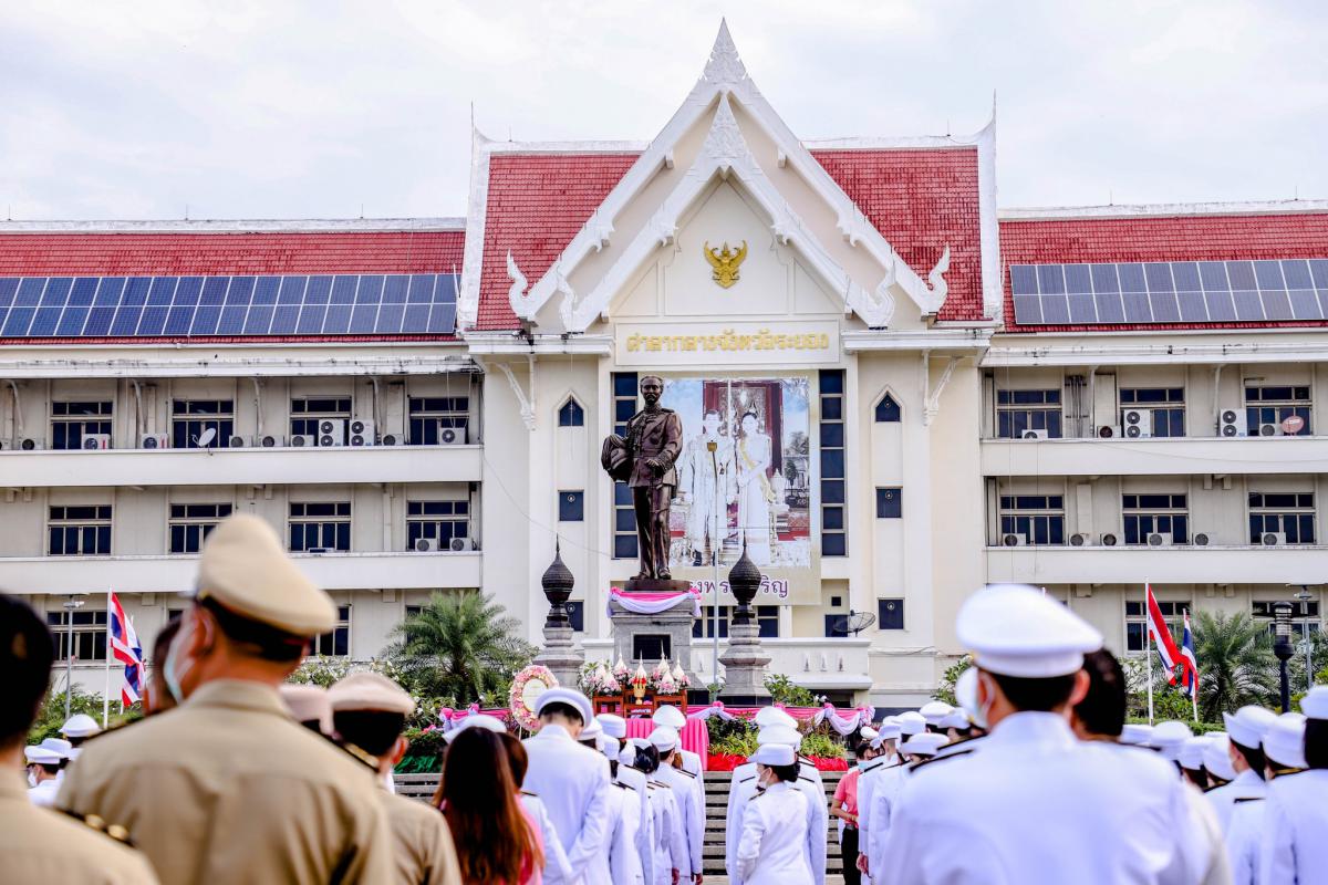 วันที่ 23 ตุลาคม 2565 เวลา 07.30 น. ณ บริเวณด้านหน้าพระบรมราชานุสาวรีย์ รัชกาลที่ 5 ศูนย์ราชการจังหวัดระยอง นายประสานต์ พฤกษาชาติ รองนายกองค์การบริหารส่วนจังหวัดระยอง (2) พร้อมด้วย นายสมบัติ มุมทอง หัวหน้าสำนักปลัด ผู้แทนส่วนราชการ หน่วยงาน และองค์กรต่างๆเข้าร่วมพิธีน้อมรำลึกเนื่องในวันคล้ายวันสวรรคตพระบาทสมเด็จพระจุลจอมเกล้าเจ้าอยู่หัวอย่างพร้อมเพรียงกัน โดยมี นายไตรภพ วงศ์ไตรรัตน์ ผู้ว่าราชการจังหวัดระยอง เป็นประธานในพิธีวางพวงมาลาถวายราชสักการะด้านหน้าพระบรมราชานุสาวรีย์ฯ เพื่อน้อมรำลึกในพระมหากรุณาธิคุณของพระองค์ที่ทรงมีต่อพสกนิกรชาวไทยอย่างหาที่สุดมิได้