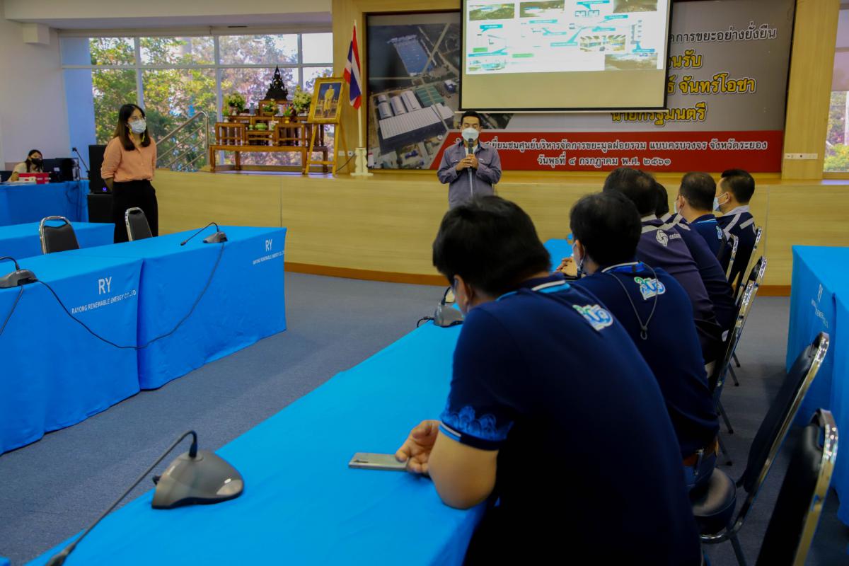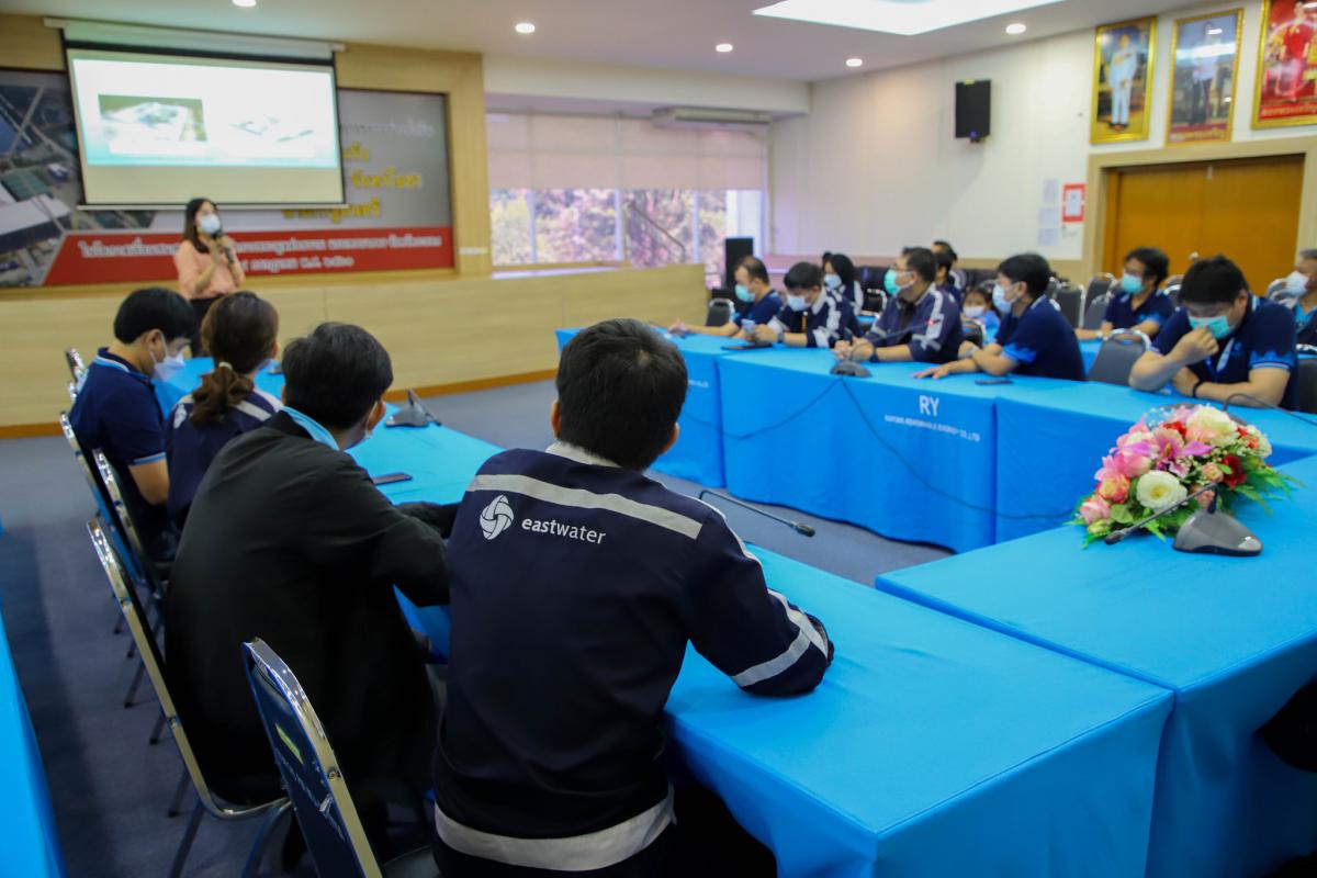 วันที่ 25 ตุลาคม 2565 เวลา 09.30 น. นายศุภทรรศ สาพิมาน ผู้อำนวยการฝ่ายปฏิบัติการและบริการลูกค้า บริษัท อีสท์ วอเตอร์ หรือ บริษัท จัดการและพัฒนาทรัพยากรน้ำภาคตะวันออก จำกัด (มหาชน) นำพนักงาน จำนวน 28 คน เข้าเยี่ยมชมศูนย์กำจัดขยะมูลฝอยแบบครบวงจรจังหวัดระยอง เพื่อรับฟังการบรรยายการจัดการขยะมูลฝอยและสิ่งปฏิกูลแบบบูรณาการ โดยมีคณะเจ้าหน้าที่ฝ่ายจัดการมูลฝอยและสิ่งปฏิกูล กองสาธารณสุข พร้อมด้วยเจ้าหน้าจากบริษัท GPSC ร่วมให้การต้อนรับพร้อมทั้งบรรยายให้ความรู้แก่คณะที่เข้าศึกษาดูงานดังกล่าว