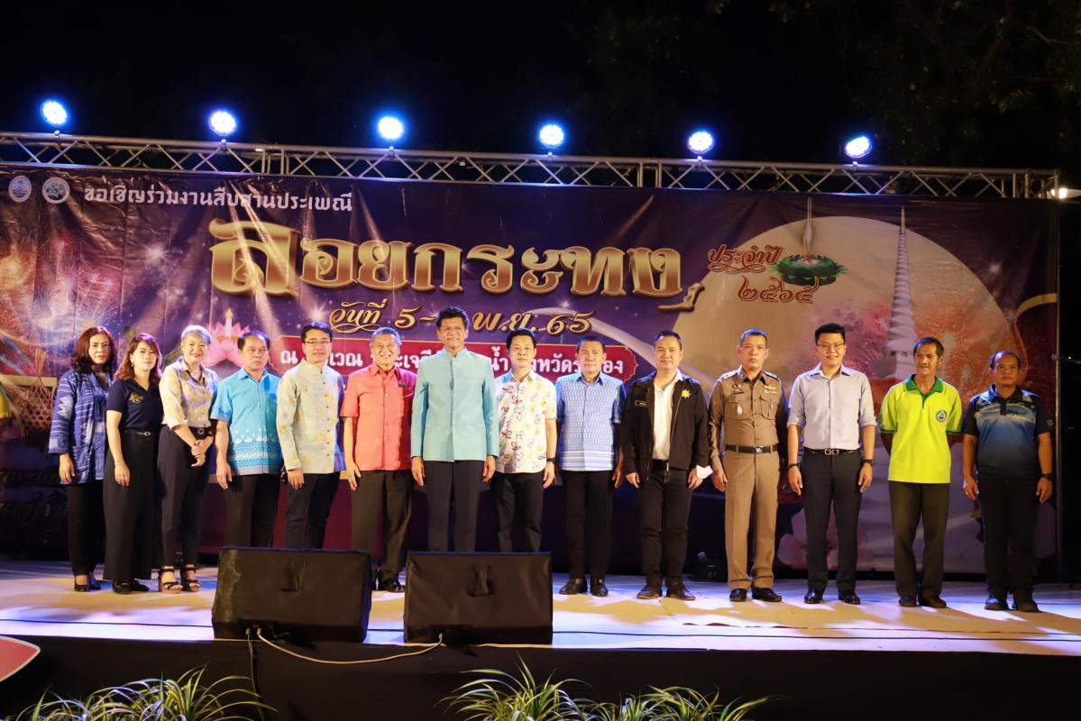 วันที่ 5 พฤศจิกายน 2565 เวลา 18.00 น. องค์การบริหารส่วนจังหวัดระยอง ร่วมกับ เทศบาลนครระยอง เทศบาลตำบลเนินพระ สำนักงานทรัพยากรทางทะเลและชายฝั่งที่ 1 กลุ่มอนุรักษฟื้นฟูแม่น้ำระยองและป่าชายเลน สำนักงานจังหวัดระยอง และหน่วยงานภาคเอกชน ร่วมจัดงานสืบสานประเพณีลอยกระทง ประจำปี 2565 เพื่ออนุรักษ์วัฒนธรรมประเพณี ส่งเสริม ฟื้นฟู สืบสานวัฒนธรรมไทย และส่งเสริมการท่องเที่ยวของจังหวัดระยองให้เป็นที่รู้จักมากขึ้น โดยได้รับเกียรติจาก ดร.สาธิต ปิตุเตชะ รัฐมนตรีช่วยว่าการกระทรวงสาธารณสุข เป็นประธานเปิดงาน มีนายกิตติ เกียรติ์มนตรี รองนายกองค์การบริหารส่วนจังหวัดระยอง (1) กล่าวรายงาน พร้อมด้วย คณะผู้บริหาร สมาชิกสภาองค์การบริหารส่วนจังหวัดระยอง ตัวแทนส่วนราชการ เข้าร่วมงานอย่างพร้อมเพรียง ณ พระเจดีย์กลางน้ำ อำเภอเมือง จังหวัดระยอง