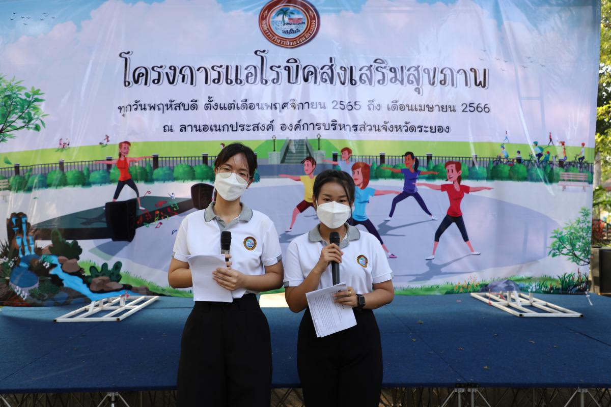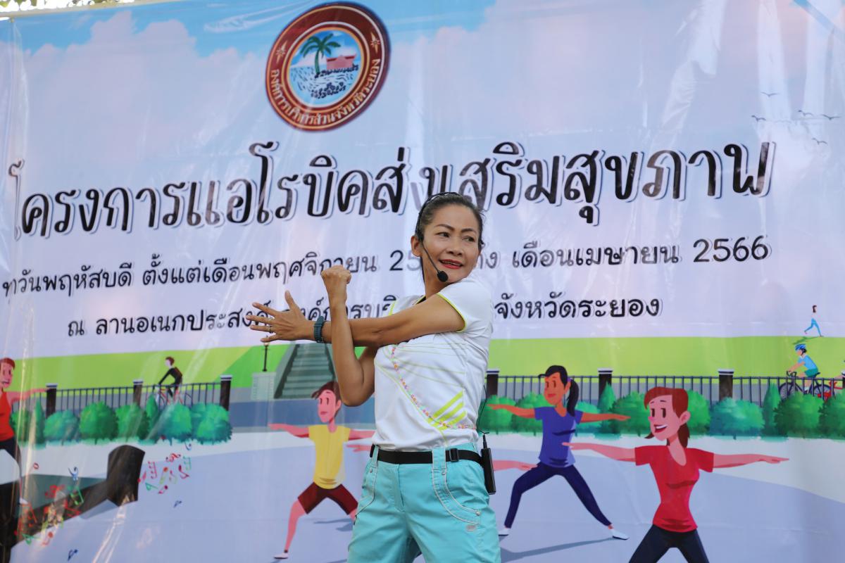 ด้านนางศุภลักษณ์ มงคงฉัตร หัวหน้าฝ่ายบริหารงานทั่วไป รักษาราชการแทน ผอ.กองสาธารณสุข กล่าวว่า “กองสาธารณสุข อบจ.ระยอง ได้ตระหนักและเห็นความสำคัญของกิจกรรมการออกกำลังกายเพื่อการมีสุขภาพที่ดี ปราศจากโรคภัย จึงจัดโครงการแอโรบิคส่งเสริมสุขภาพขึ้น โดยมีวัตถุประสงค์เพื่อให้ประชาชนในพื้นที่จังหวัดระยองมีกิจกรรมทางกายสร้างสุขภาพให้แก่ตนเอง และให้ประชาชนในพื้นที่จังหวัดระยองเข้าร่วมกิจกรรมในการสร้างสุขภาพอย่างต่อเนื่องและยั่งยืน รวมทั้งให้ประชาชนในพื้นที่จังหวัดระยองตระหนักถึงการดูแลสุขภาพตนเอง ลดอัตราการเสี่ยงต่อการเกิดโรค เพื่อให้เกิดเครือข่ายการสร้างสุขภาพในพื้นที่จังหวัดระยอง”