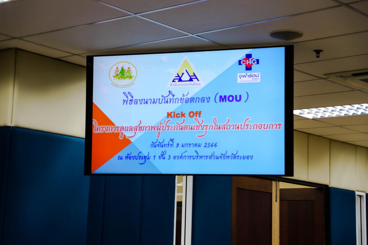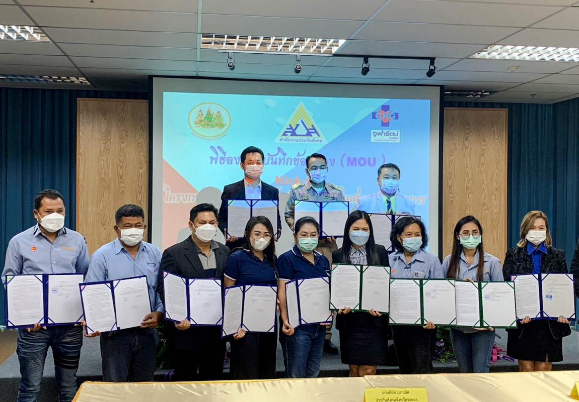 วันที่ 9 มกราคม 2566 เวลา 10.00 น. ณ ห้องประชุม 1 ชั้น 3 องค์การบริหารส่วนจังหวัดระยอง นายกิตติ เกียรติ์มนตรี รองนายกองค์การบริหารส่วนจังหวัดระยอง (1) และเจ้าหน้าที่ที่เกี่ยวข้อง ร่วมเข้าพิธีลงนามบันทึกข้อตกลงการร่วมโครงการดูแลสุขภาพผู้ประกันตนเชิงรุก ในสถานประกอบการ ระหว่าง ฝ่ายสำนักงานประกันสังคม ฝ่ายสถานพยาบาล และฝ่ายสถานประกอบการ โดยมีวัตถุประสงค์เพื่อให้ผู้ประกันตนได้รับการดูแลส่งเสริมสุขภาพและป้องกันโรค ที่มีความสอดคล้องกับการพัฒนาระบบบริการสุขภาพปฐมภูมิของประเทศ ให้เกิดรูปแบบที่เป็นรูปธรรมและมีประสิทธิภาพ