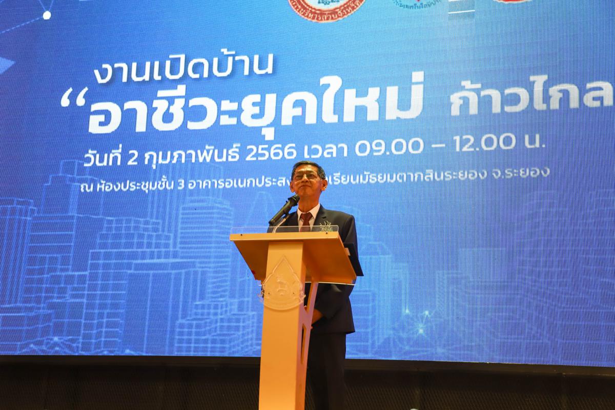 วันที่ 2 กุมภาพันธ์ 2566 เวลา 09.00 น. นายปิยะ ปิตุเตชะ นายกองค์การบริหารส่วนจังหวัดระยอง พร้อมด้วย คณะผู้บริหาร สมาชิกสภาองค์การบริหารส่วนจังหวัดระยอง ผู้อำนวยการกอง ผอ.โรงเรียนในสังกัด อบจ.ระยอง หัวหน้าส่วนราชการ คณะสถาบันเทคโนโลยีปทุมวัน และผู้ที่เกี่ยวข้องเข้าร่วมเปิดงานเปิดบ้านอาชีวะยุคใหม่ ก้าวไกลสู่ EEC โดยมี นายประสานต์ พฤกษาชาติ รองนายกองค์การบริหารส่วนจังหวัดระยอง เป็นผู้กล่าวรายงาน ณ ห้องประชุมชั้น 3 อาคารอเนกประสงค์ โรงเรียนมัธยมตากสินระยอง
