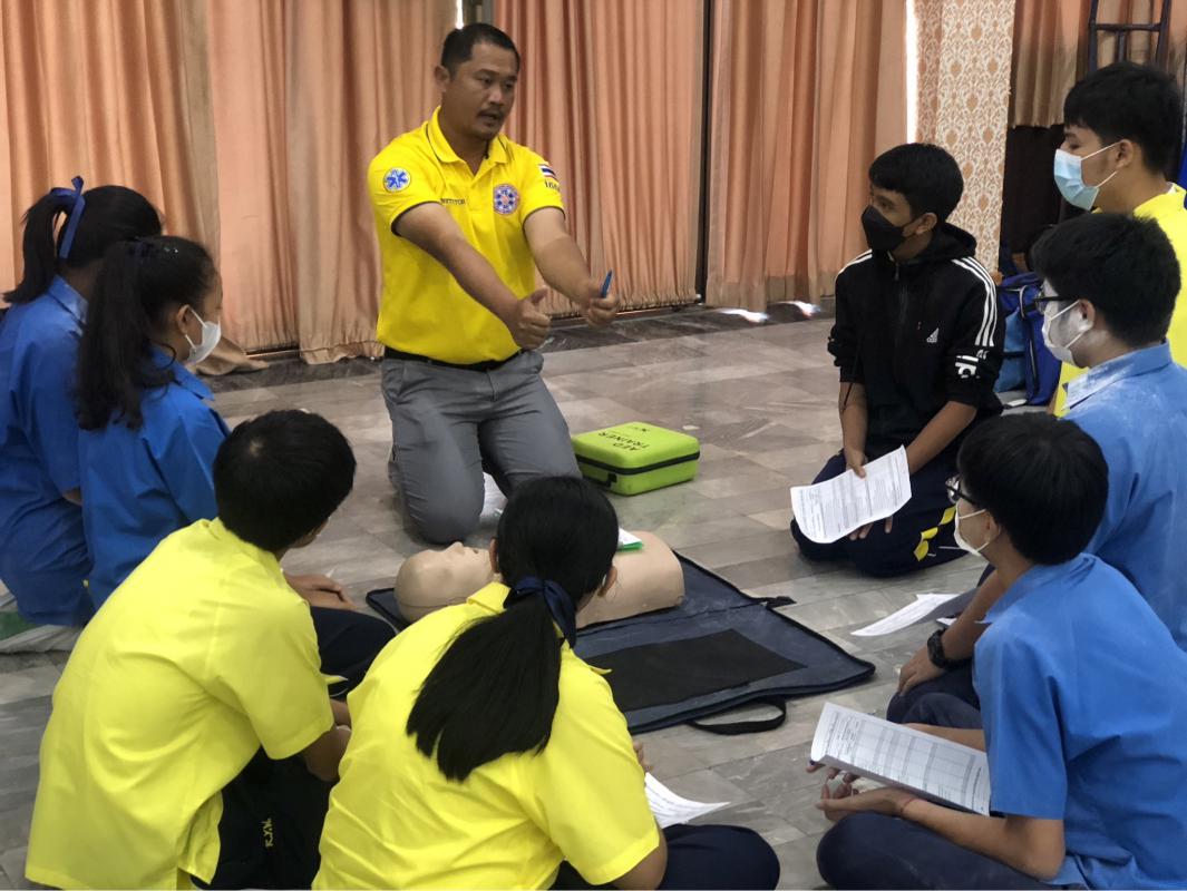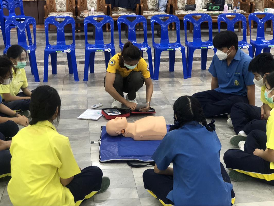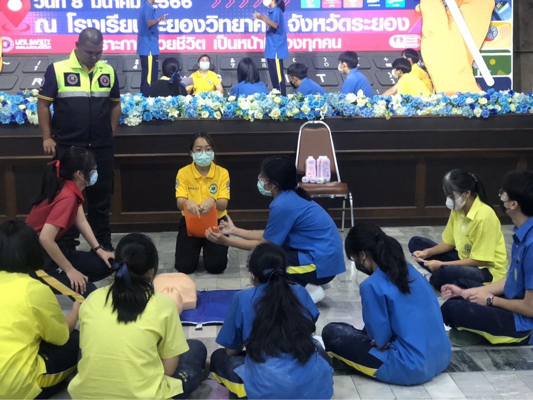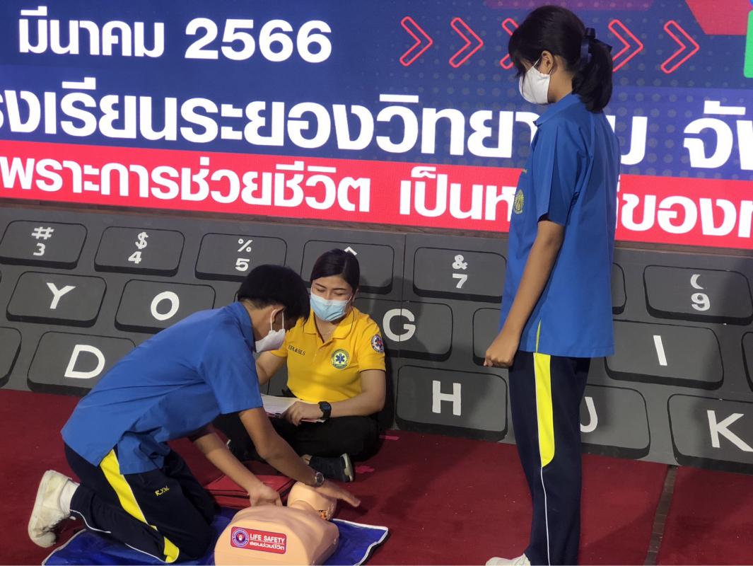 วันที่ 8 มีนาคม 2566 เวลา 08.30 น. นายไพฑูรย์ รัตนพรวารีสกุล สมาชิกสภาองค์การบริหารส่วนจังหวัดระยอง พร้อมทั้งคณะเจ้าหน้าที่จากฝ่ายบริการทางการแพทย์ กองสาธารณสุข ร่วมเป็นวิทยากร อบรมหลักสูตรการปฐมพยาบาลฉุกเฉินและการกู้ชีพขั้นพื้นฐาน CPR ให้กับคณะครูและเด็กนักเรียนโรงเรียนระยองวิทยาคม ณ หอประชุมบุญศิริบำเพ็ญ โรงเรียนระยองวิทยาคม ซึ่งมีผู้เข้าร่วมการอบรมในครั้งนี้ จำนวน 77 คน ซึ่งผู้เข้ารับการอบรมทุกท่านจะได้รับความรู้และทักษะในการปฐมพยาบาลฉุกเฉิน การกู้ชีพขั้นพื้นฐาน CPR การใช้เครื่องกระตุ้นไฟฟ้าหัวใจอัตโนมัติ AED ในการช่วยเหลือผู้ที่มีภาวะหัวใจหยุดเต้นแบบเฉียบพลัน