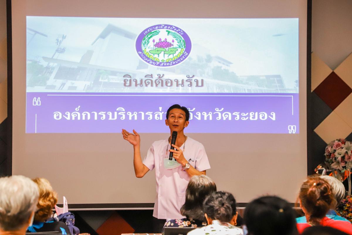 วันที่ 4 เมษายน 2566 นางกนกวรรณ เบญจาทิกุล สมาชิกสภาองค์การบริหารส่วนจังหวัดระยอง เขต 1 อำเภอแกลง พร้อมด้วยคณะเจ้าหน้าที่กองสาธารณสุข นำคณะผู้สูงอายุ ทั้ง 8 อำเภอในจังหวัดระยอง เข้าศึกษาดูงานตามโครงการ" Smart Ageing Society" สูงวัยสุขภาพดีสู่การสูงวัยอย่างมีสุขภาวะดียั่งยืน โดยมีนายรังสรรค์ นันทกาวงศ์ นายกเทศมนตรีเมืองบึงยี่โถ จ.ปทุมธานี พร้อมด้วยนายมานพ เกิดแสง ปลัดเทศบาลฯให้การต้อนรับอย่างอบอุ่น
