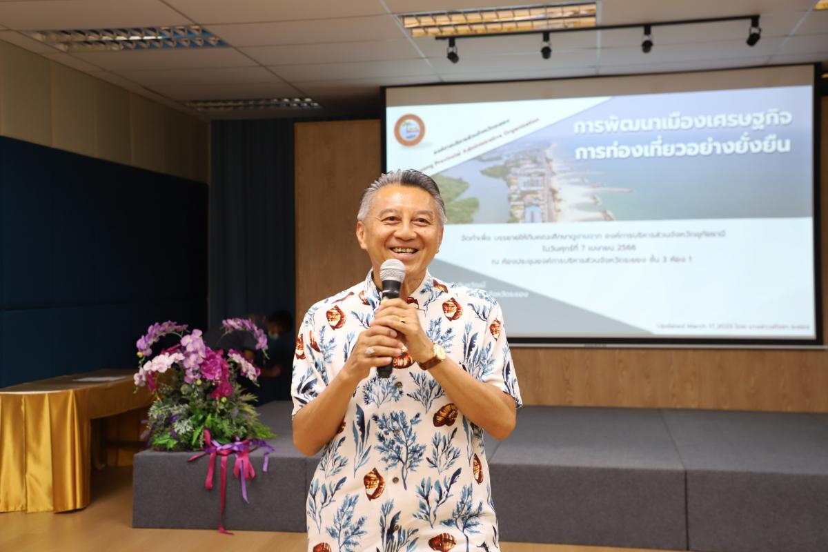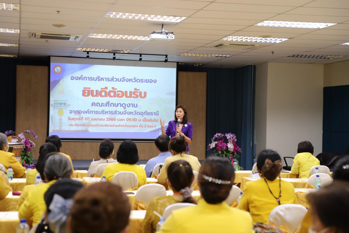 วันที่ 7 เมษายน 2566 เวลา 09.30 น. นายกิตติ เกียรติ์มนตรี รองนายกองค์การบริหารส่วนจังหวัดระยอง (1) พร้อมด้วย นายมนตรี ชนะชัยวิบูลวัฒน์ ที่ปรึกษานายกองค์การบริหารส่วนจังหวัดระยอง, นางกนกวรรณ เบญจาทิกุล ประธานคณะกรรมการฝ่ายเยาวชน สตรี ผู้สูงอายุและสังคมสงเคราะห์ ประจำสภาองค์การบริหารส่วนจังหวัดระยอง นายอรุณ วิชกิจ ผู้เชี่ยวชาญพิเศษด้านการวางแผนและวิเคราะห์นโยบาย นายสมเกียรติ ยุพาพิน รองปลัดอบจ.ระยอง รักษาราชการแทน ปลัดอบจ.ระยอง ผู้อำนวยการกอง และเจ้าหน้าที่ที่เกี่ยวข้องร่วมให้การต้อนรับคณะศึกษาดูงานจากองค์การบริหารส่วนจังหวัดอุทัยธานี นำโดย คุณไพรลิน นุ้ยปรี ที่ปรึกษานายกอบจ อุทัยธานี ประธานคณะกรรมการสตรี จังหวัดอุทัยธานี คณะกรรมการพัฒนาสตรีจังหวัดอุทัยธานี นายชะลอ กลิ่นเสียงดี รองปลัดองค์การบริหารส่วนจังหวัดอุทัยธานี และคณะจำนวน 83 คน เข้าศึกษาดูงานและรับฟังการบรรยายเรื่อง การบริหารจัดการบ้านเมืองที่ดี เพื่อพัฒนาให้เป็นผู้มีศักยภาพ บำเพ็ญตนประโยชน์ต่อชุมชนและสังคม เพื่อเป็นแนวทางในการเพิ่มพูนความรู้และนำมาปรับใช้ในองค์กรต่อไป ณ ห้องประชุมอบจ.ระยอง ชั้น 3 ห้อง 1