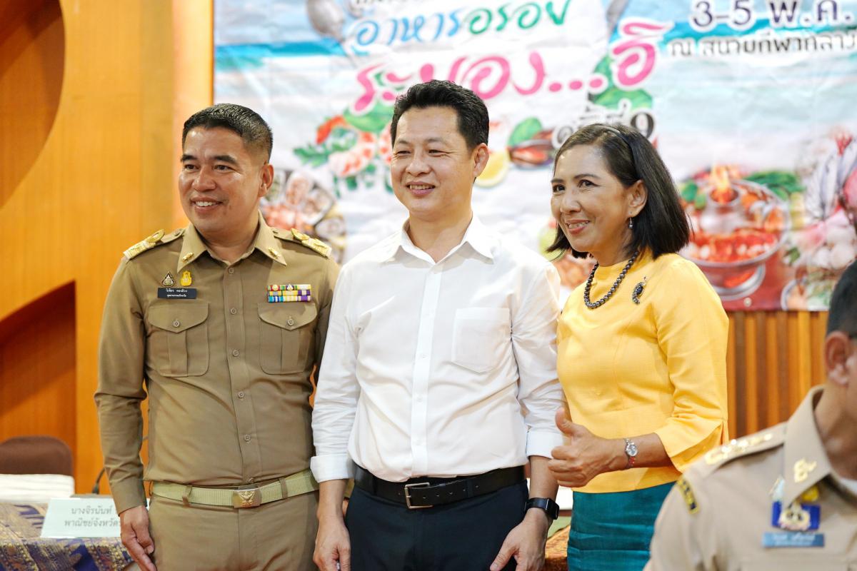 วันที่ 1 พฤษภาคม 2566 เวลา 15.30 น. ณ ห้องไม้แต่ง ตำนานป่ารีสอร์ท อ.เมือง จ.ระยอง นายไตรภพ วงศ์ไตรรัตน์ ผู้ว่าราชการจังหวัดระยอง เป็นประธานงานแถลงข่าว พร้อมด้วย นายกิตติ เกียรติ์มนตรี รองนายกองค์การบริหารส่วนจังหวัดระยอง (1), นางจิรนันท์ บัวสำลี พาณิชย์จังหวัดระยอง, นางสาวเครือมาศ บุญใคร่ กรรมการหอการค้าจังหวัดระยอง, นางปิยะดา ควรหา นายกสมาคมผู้ประกอบการอาหารและเครื่องดื่มจังหวัดระยอง และผู้ที่เกี่ยวข้องเข้าร่วมงานแถลงข่าวการจัดงาน “เทศกาลอาหารอร่อย ระยอง…ฮิ” ครั้งที่ 9 โดยพร้อมเพรียงกัน