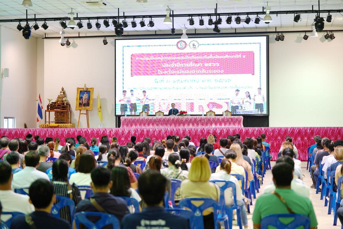 วันที่ 3 พฤษภาคม 2566 เวลา 08.30 น. นายปิยะ ปิตุเตชะ นายกองค์การบริหารส่วนจังระยอง พร้อมด้วย นายกิตติ เกียรติ์มนตรี รองนายกองคการบริหารส่วนจังหวัดระยอง (1), นายประสานต์ พฤกษาชาติ รองนายกองค์การบริหารส่วนจังหวัดระยอง (2), นางสาววัชราภรณ์ สมพงษ์ผึ้ง รองผู้อำนวยการสถานศึกษา โรงเรียนอนุบาลนานาชาติตากสินระยอง รักษาการในตำแหน่ง ผู้อำนวยการสถานศึกษา โรงเรียนมัธยมตากสินระยอง คณะผู้บริหาร คณะครู และเจ้าหน้าที่ที่เกี่ยวข้องเข้าร่วมการปฐมนิเทศผู้ปกครองและนักเรียนระดับชั้นมัธยมศึกษาปีที่1 และมัธยมศึกษาปี4 โดยมีวัตถุประสงค์ เพื่อชี้แจงถึงนโยบายด้านการศึกษาของโรงเรียนและให้นักเรียนรู้จักการปรับตัวเข้ากับเพื่อนและสภาพแวดล้อมใหม่ๆ ในโรงเรียน ณ หอประชุมอาคารอเนกประสงค์ ชั้น 3 โรงเรียนมัธยมตากสินระยอง