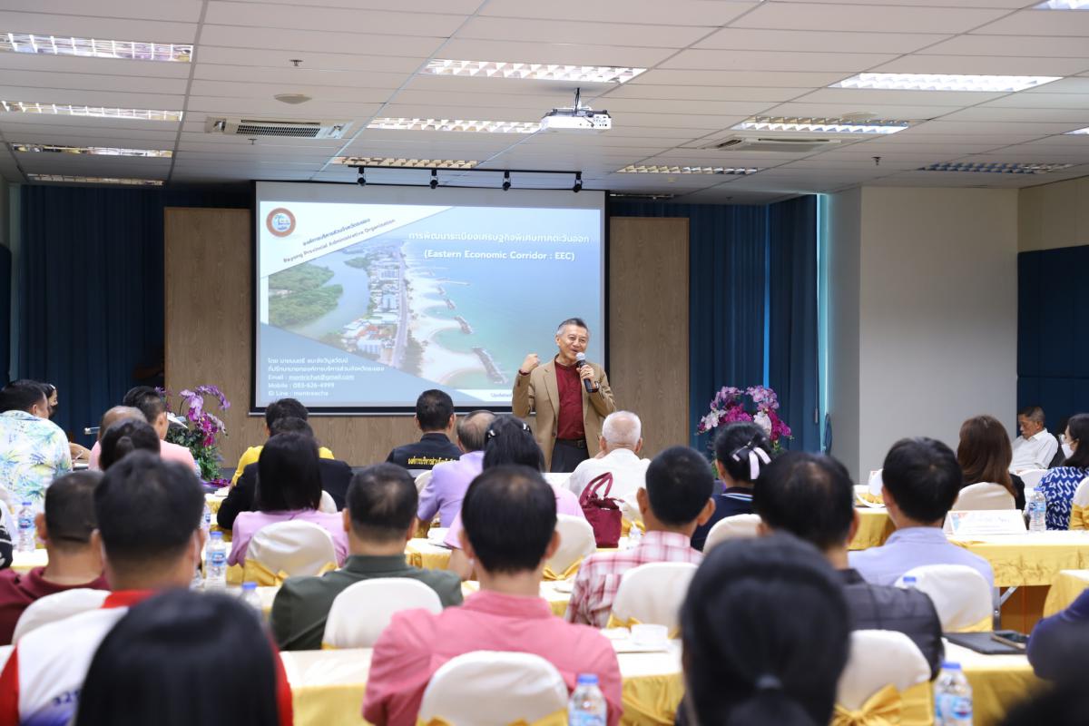 วันที่ 25 พฤษภาคม 2566 เวลา 14.00 น. นายกิตติ เกียรติ์มนตรี รองนายกองค์การบริหารส่วนจังหวัดระยอง (1) พร้อมด้วยนายมนตรี ชนะชัยวิบูลวัฒน์ ที่ปรึกษานายกองค์การบริหารส่วนจังหวัดระยอง นายอรุณ วิชกิจ ผู้เชี่ยวชาญพิเศษด้านการวางแผนและวิเคราะห์นโยบาย นายจรัญ ความเพียร เลขานุการนายกองค์การบริหารส่วนจังหวัดระยอง นายสมเกียรติ ยุพาพิน รองปลัดอบจ.ระยอง รักษาราชการแทน ปลัดอบจ.ระยอง ผู้อำนวยการกอง หัวหน้าส่วนราชการ และเจ้าหน้าที่ที่เกี่ยวข้องร่วมให้การต้อนรับคณะศึกษาดูงานจากอบจ.เชียงราย ซึ่งนำคณะโดยนายเกรียงศักดิ์ วันไชยธนวงศ์ รองนายกอบจ.เชียงราย รวมถึงข้าราชการและเจ้าหน้าที่จำนวน 140 คน เข้าศึกษาดูงานและรับฟังการบรรยายเรื่อง การบริหารจัดการบ้านเมืองที่ดีตามหลักธรรมาภิบาล และการบริหารงานท้องถิ่นในเขตเศรษฐกิจ EEC เพื่อเพื่อเป็นแนวทางในการเพิ่มพูนความรู้และนำมาปรับใช้ในองค์กร ณ ห้องประชุมอบจ.ระยอง ชั้น 3 ห้อง 2