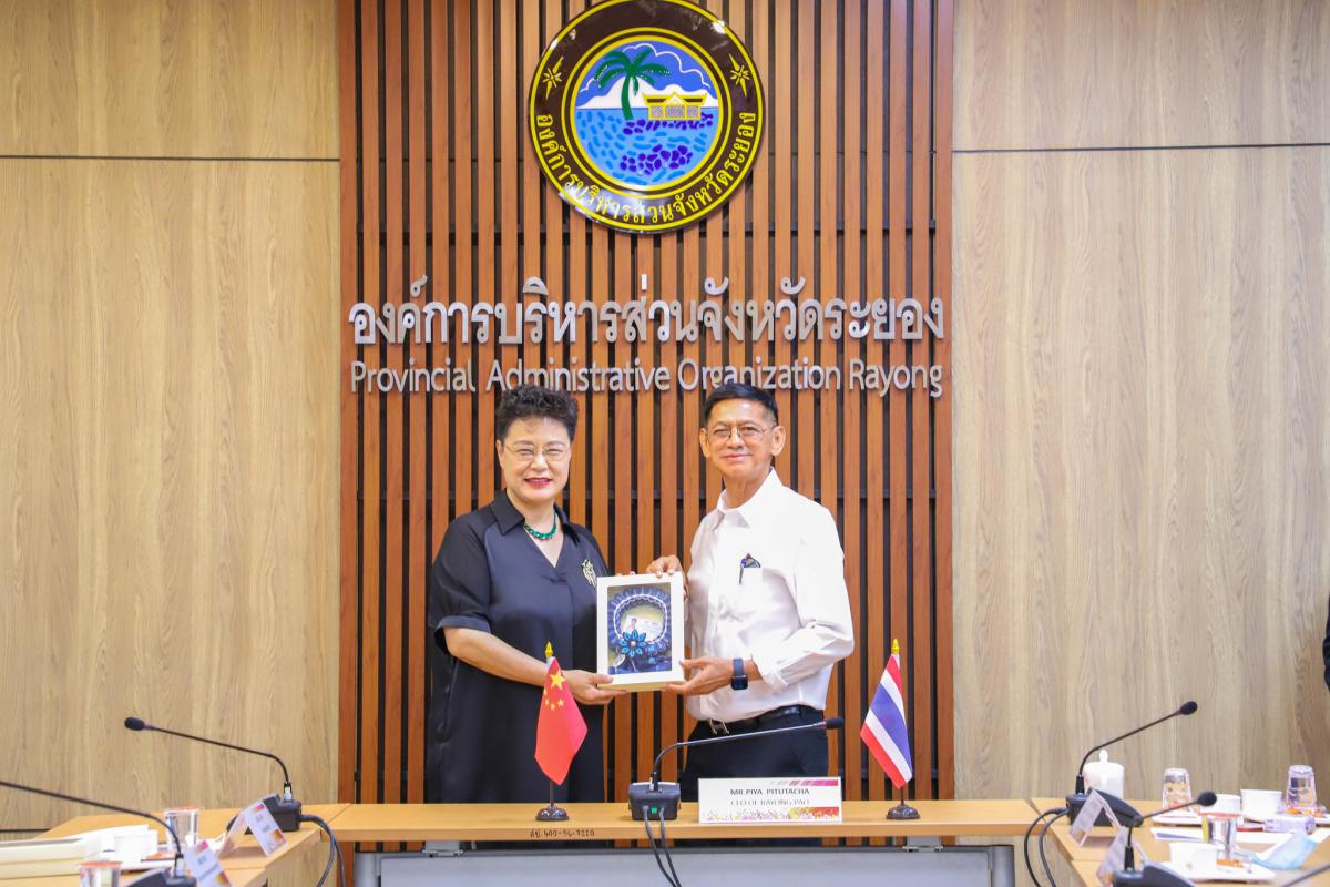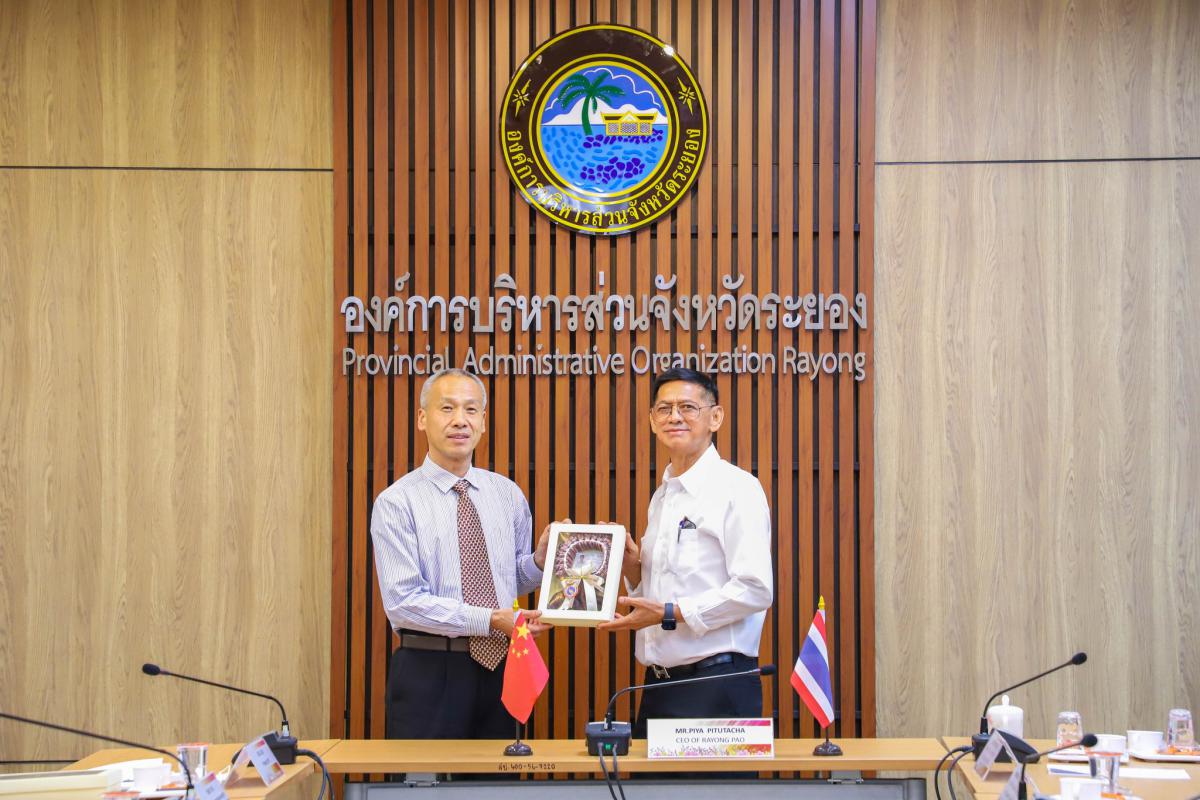 โดยในการประชุมดังกล่าว อบจ.ระยองได้ประชุมหารือกับคณะผู้บริหารจากวิทยาลัยเทคโนโลยีอู๋ซี มณฑลเจียงซู สาธารณรัฐประชาชนจีน นำโดย Mr.ZHOU GUIJIN President,Wxit เพื่อร่วมประชุมและหารือในการสร้างความร่วมมือทางวิชาการ ด้านการพัฒนาผู้เรียน ด้านการพัฒนาบุคลากร รวมทั้งด้านการส่งเสริมการท่องเที่ยว และการส่งเสริมด้านเศรษฐกิจ ระหว่างวิทยาลัยเทคโนโลยีอู๋ซี และองค์การบริหารส่วนจังหวัดระยอง