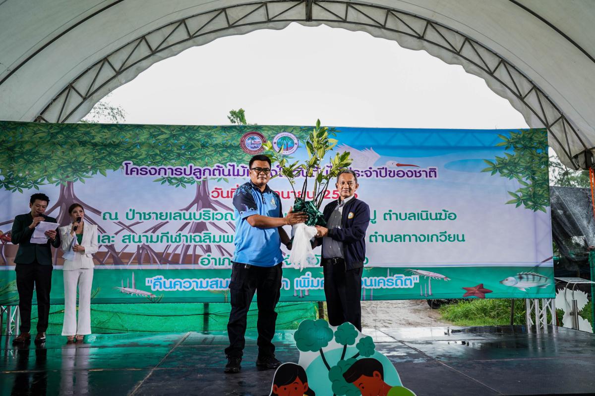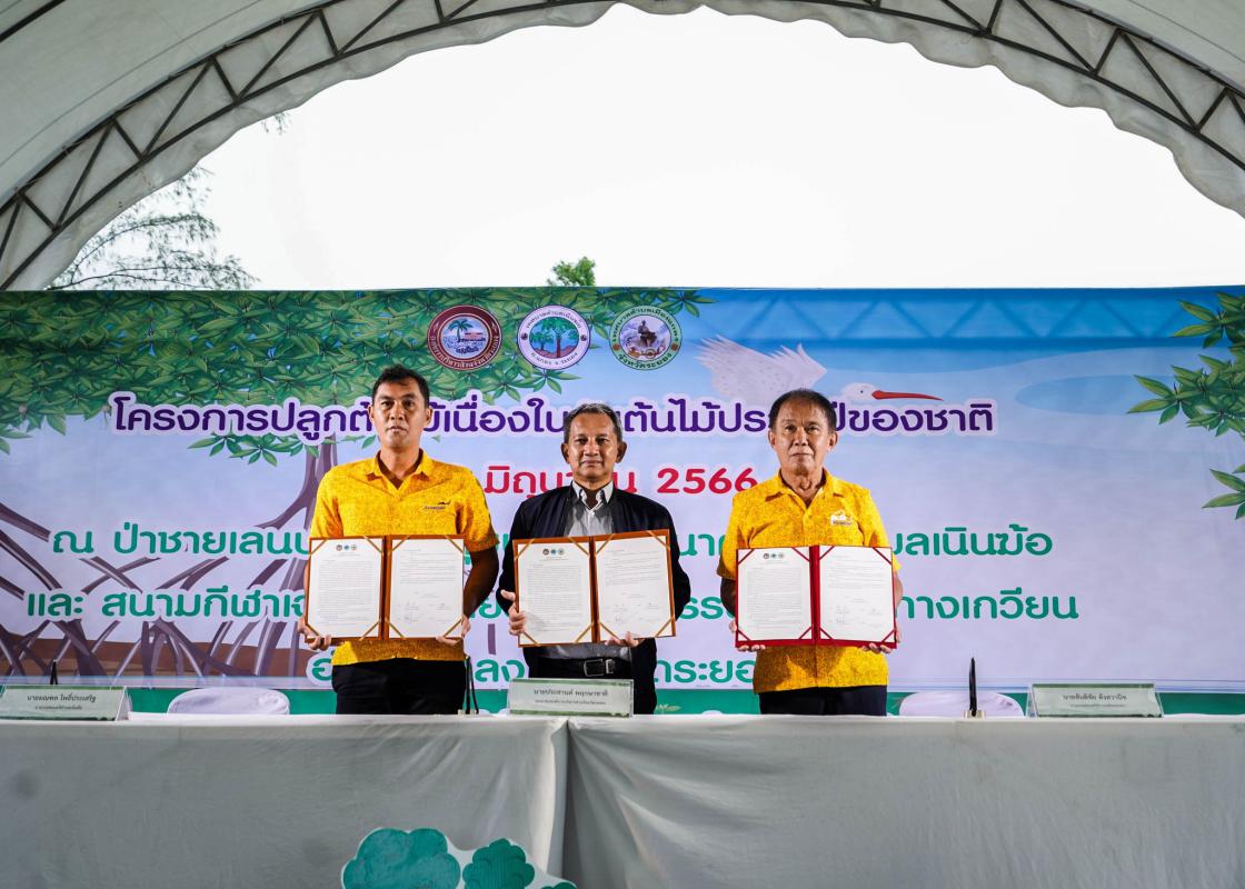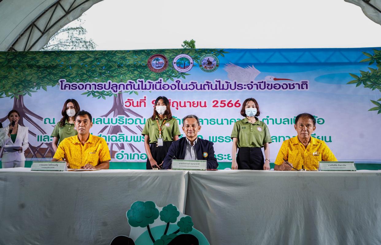 วันที่ 9 มิถุนายน 2566 เวลา 09.00 น. นายประสานต์ พฤกษาชาติ รองนายกองค์การบริหารส่วนจังหวัดระยอง (2) เป็นประธานในพิธี พร้อมด้วย นางกนกวรรณ เบญจาทิกุล สมาชิกสภาองค์การบริหารส่วนจังหวัดระยอง เขต 1 อำเภอแกลง, นางณิชาพร คุ้มท้วม ผู้อำนวยการกองทรัพยากรธรรมชาติและสิ่งแวดล้อม, นายมณฑล โพธิ์ประเสริฐ นายกเทศมนตรีตำบลเนินฆ้อ, นายสันติชัย ตังสวานิช นายกเทศมนตรีตำบลเมืองแกลง และเจ้าหน้าที่ที่เกี่ยวข้องเข้าร่วมพิธีเปิดโครงการปลูกต้นไม้เนื่องในวันต้นไม้ประจำปีของชาติ และพิธีลงนามบันทึกข้อตกลงความร่วมมือ (MOU) โครงการฯ ร่วมกับเทศบาลตำบลเนินฆ้อ และเทศบาลตำบลเมืองแกลง โดยพร้อมเพรียงกัน ณ ป่าชายเลนบริเวณกลุ่มบ้านปลาธนาคารปู ตำบลเนินฆ้อ และสนามกีฬาเฉลิมพระเกียรติ 80 พรรษา ตำบลทางเกวียน อำเภอแกลง จังหวัดระยอง