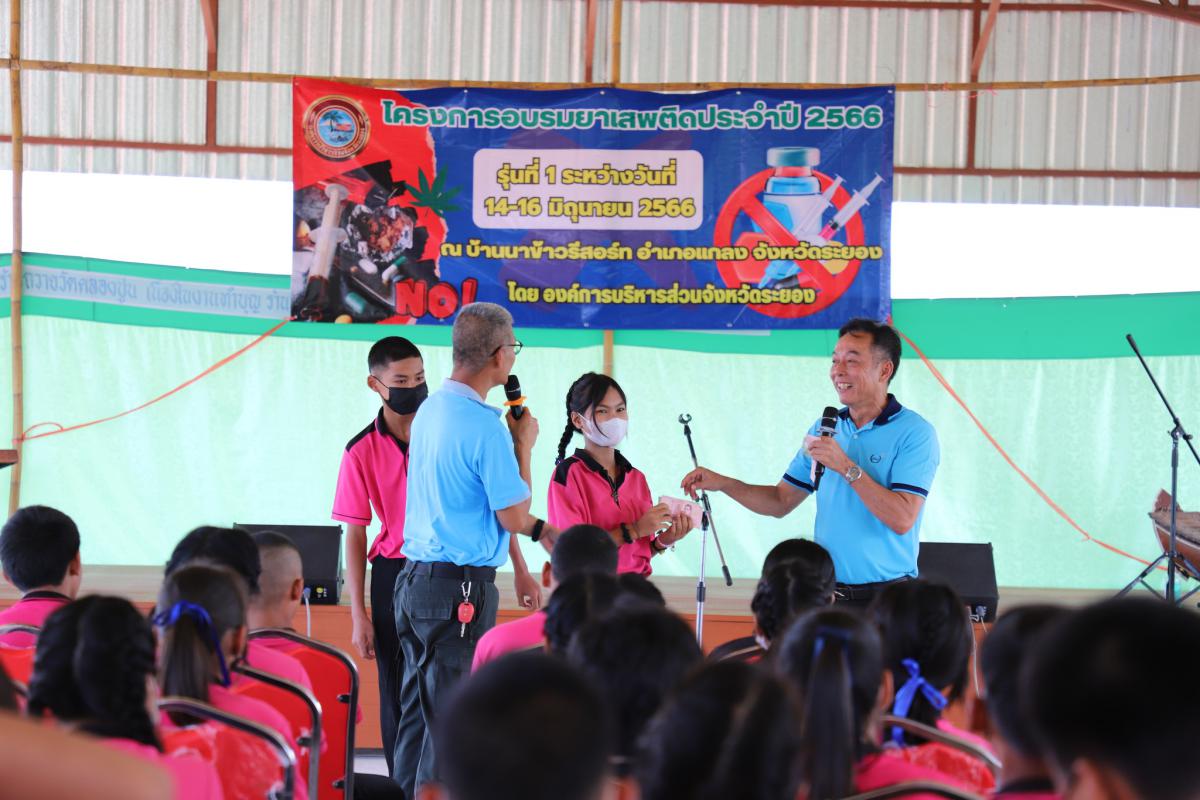 วันที่ 14 มิถุนายน 2566 เวลา 13.00 น. นายจรัญ ความเพียร เลขานุการองค์การบริหารส่วนจังหวัดระยอง ให้เกียรติเป็นประธานในการเปิดโครงการอบรมยาเสพติด ประจำปี 2566 รุ่นที่ 1 โดยมีจ่าเอกหิรัญ กล่อมแก้ว หัวหน้าฝ่ายป้องกันและบรรเทาสาธารณภัย เป็นผู้กล่าวรายงานวัตถุประสงค์ของโครงการ พร้อมด้วยนายสมบัติ มุมทอง หัวหน้าสำนักปลัด และเจ้าหน้าที่ที่เกี่ยวข้อง เข้าร่วมโครงการอย่างพร้อมเพรียง ณ บ้านนาข้าว รีสอร์ท อำเภอแกลง จังหวัดระยอง