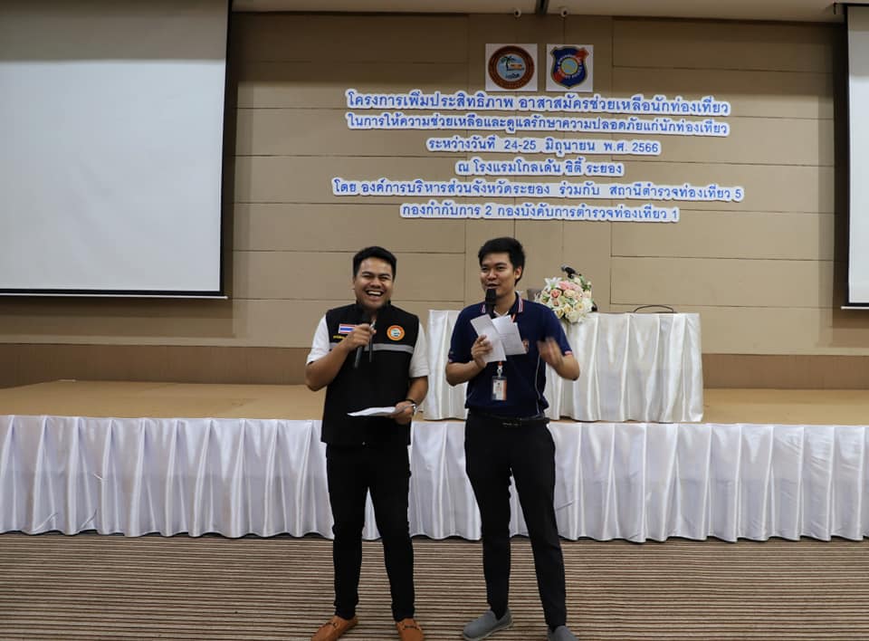 องค์การบริหารส่วนจังหวัดระยอง ร่วมกับสถานีตำรวจท่องเที่ยว 5 กองกำกับการ 2 กองบังคับการตำรวจท่องเที่ยว 1 ได้ตระหนักถึงความสำคัญในการส่งเสริมการท่องเที่ยวและป้องกันการบรรเทาสาธารณภัย เพื่อเป็นการส่งเสริมเพิ่มประสิทธิภาพอาสาสมัครช่วยเหลือนักท่องเที่ยวในการให้ความช่วยเหลือและดูแลรักษาความปลอดภัยแก่นักท่องเที่ยว จึงได้จัดทำโครงการดังกล่าวขึ้นโดยมีผู้เข้ารับการฝึกอบรมจำนวน 140 คน ซึ่งได้รับเกียรติวิทยากรจาก สถานีตำรวจท่องเที่ยว 5 กองกำกับการ 2 กองบังคับการตำรวจท่องเที่ยว 1 ตลอดการอบรม การจัดอบรมได้จัดขึ้นระหว่างวันที่ 24-25 มิถุนายน 2566 ณ โรงแรมโกลเด้น ซิตี้ ระยอง