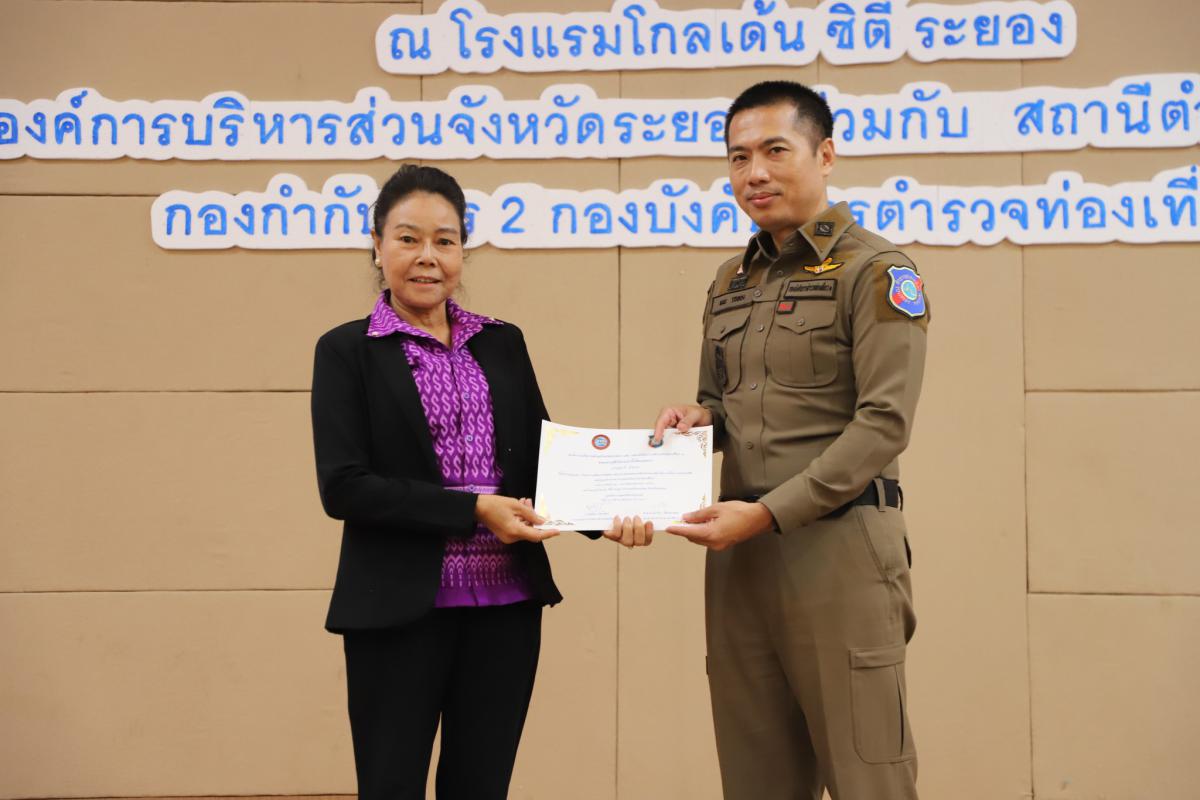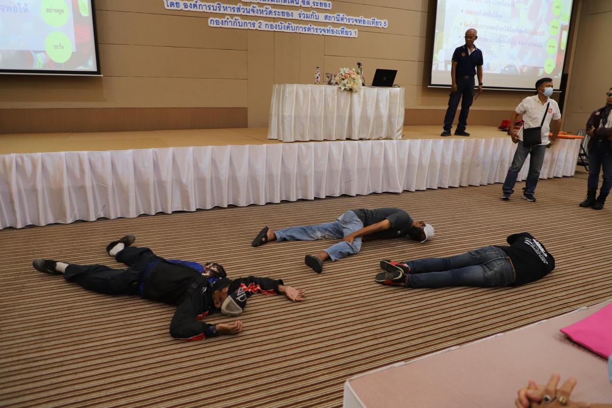 วันที่ 25 มิถุนายน 2566 เวลา 09.00 น. องค์การบริหารส่วนจังหวัดระยอง ร่วมกับสถานีตำรวจท่องเที่ยว 5 กองกำกับการ 2 กองบังคับการตำรวจท่องเที่ยว 1 จัดโครงการเพิ่มประสิทธิภาพอาสาสมัครช่วยเหลือนักท่องเที่ยวในการให้ความช่วยเหลือและดูแลรักษาความปลอดภัยให้แก่นักท่องเที่ยว ตั้งแต่วันที่ 24 - 25 มิถุนายน 2566 โดยมีการบรรยายในเรื่องระบบการแพทย์ฉุกเฉิน ศูนย์รับแจ้งเหตุและสั่งการทางการแพทย์ฉุกเฉินจังหวัดระยอง และการฝึกปฏิบัติในหัวข้อ การประเมินสถานการณ์ การปฐมพยาบาลเบื้องต้น และการเคลื่อนย้ายผู้ประสบภัยด้วยมือเปล่าและอุปกรณ์, การฟื้นคืนชีพด้วยมือ (CPR) การใช้เครื่อง AED การส่งตัวผู้ประสบภัยไปรักษาต่อที่โรงพยาบาล และพิธีมอบเกียรติบัตรโดยตัวแทนจากสถานีตำรวจท่องเที่ยว 5 กองกำกับการ 2 กองบังคับการตำรวจท่องเที่ยว 1 ณ ห้องสร้อยทอง โรงแรมโกลเด้น ซิตี้ ระยอง