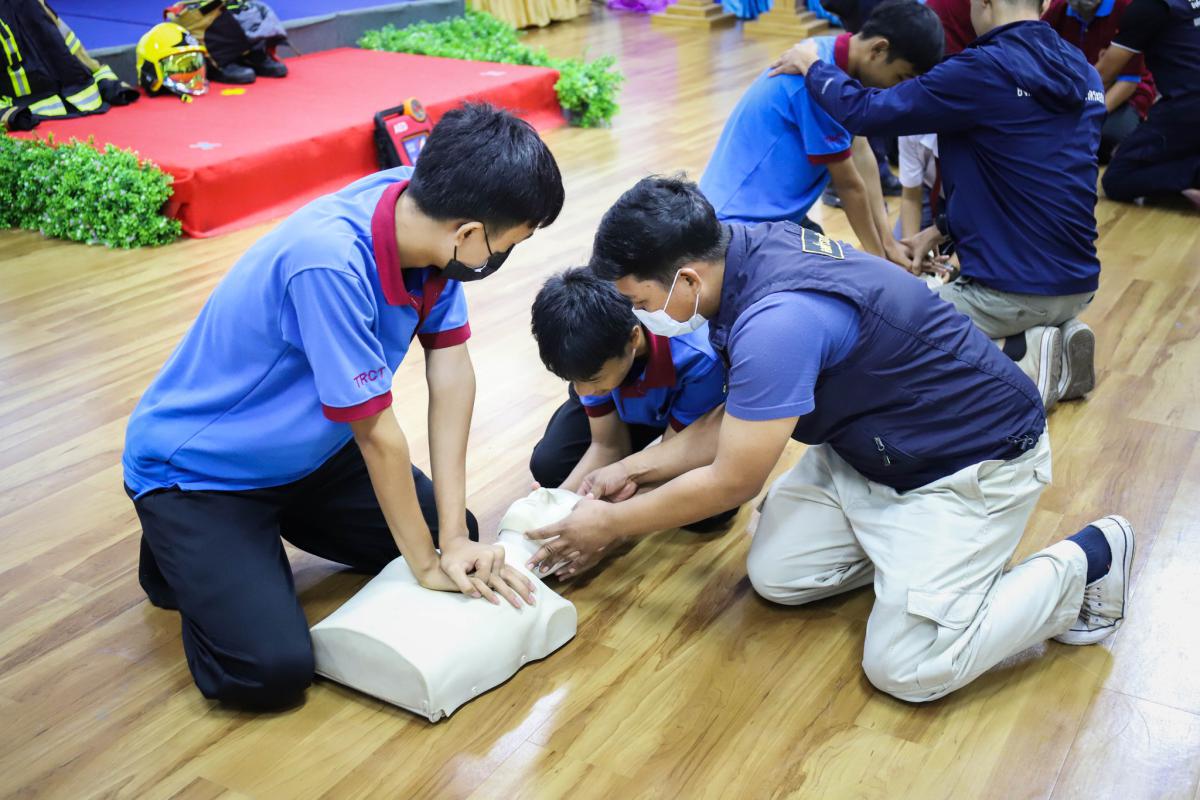 วันที่ 19 กรกฎาคม 2566 เวลา 09.00 น. องค์การบริหารส่วนจังหวัดระยองได้จัดโครงการฝึกอบรมฝึกซ้อมแผนป้องกันและบรรเทาสาธารณภัย ซึ่งนำโดย พันจ่าเอกหิรัญ กล่อมแก้ว หัวหน้าฝ่ายป้องกันและบรรเทาสาธารณภัย, นางสาววัชราภรณ์ สมพงษ์ผึ้ง รองผู้อำนวยการสถานศึกษา โรงเรียนอนุบาลนานาชาติตากสินระยอง รักษาการในตำแหน่ง ผู้อำนวยการสถานศึกษา วิทยาลัยเทคโนโลยีและอาชีวศึกษาตากสินระยอง พร้อมด้วยคณะครู นักเรียน และเจ้าที่ที่ที่เกี่ยวข้องเข้าร่วมโครงการฝึกอบรมฝึกซ้อมแผนป้องกันและบรรเทาสาธารณภัยโดยพร้อมเพรียงกัน ณ วิทยาลัยเทคโนโลยีและอาชีวศึกษาตากสินระยอง