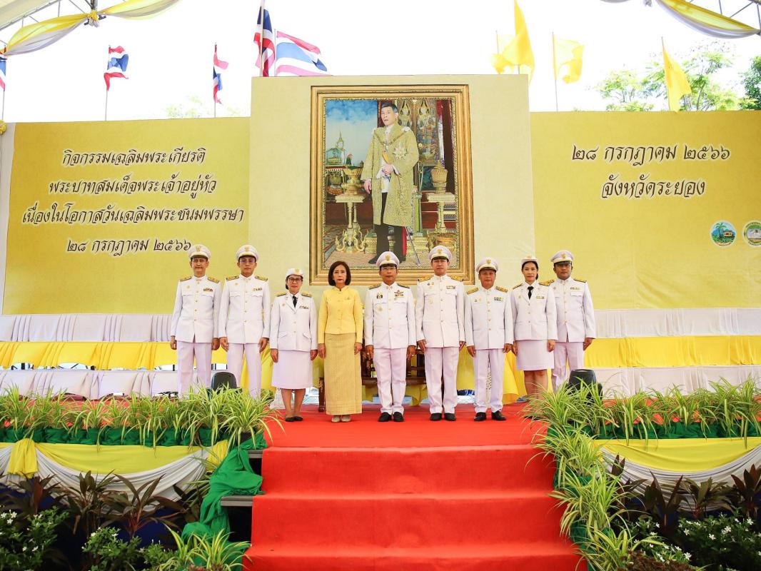 วันที่ 28 กรกฎาคม 2566 เวลา 07.30 น. ณ สวนศรีเมือง อ.เมือง จ.ระยอง องค์การบริหารส่วนจังหวัดระยอง นำโดย นายสมเกียรติ ยุพาพิน รองปลัดองค์การบริหารส่วนจังหวัดระยอง รักษาราชการแทนปลัดองค์การบริหารส่วนจังหวัดระยอง พร้อมด้วย ข้าราชการ องค์การบริหารส่วนจังหวัดระยอง เข้าร่วมกิจกรรมเฉลิมพระเกียรติพระบาทสมเด็จพระเจ้าอยู่หัว เนื่องในโอกาสวันเฉลิมพระชนมพรรษาวันที่ 28 กรกฎาคม 2566 โดยมีนายไตรภพ วงศ์ไตรรัตน์ ผู้ว่าราชการจังหวัดระยอง เป็นประธานในพิธีนำหัวหน้าส่วนราชการ ทหาร ตำรวจ ภาคเอกชน และประชาชนทุกหมู่เหล่า จัดกิจกรรมเฉลิมพระเกียรติ พระบาทสมเด็จพระเจ้าอยู่หัว เนื่องในโอกาสวันเฉลิมพระชนมพรรษา 71 พรรษา โดยได้ร่วมกันตักบาตรข้าวสารอาหารแห้งพระภิกษุสงฆ์ จำนวน 72 รูป และพิธีถวายสัตย์ปฏิญาณเป็นข้าราชการที่ดี และพลังของแผ่นดินเพื่อเป็นการแสดงออกถึงความจงรักภักดี และน้อมสำนึกในพระมหากรุณาธิคุณของพระบาทสมเด็จพระปรเมนทรรามาธิบดีศรีสินทรมหาวชิราลงกรณ พระวชิรเกล้าเจ้าอยู่หัว รัชกาลที่ 10 ที่พระองค์ทรงปฏิบัติพระราชกรณียกิจนานับการต่อประเทศชาติและพสกนิกรชาวไทย