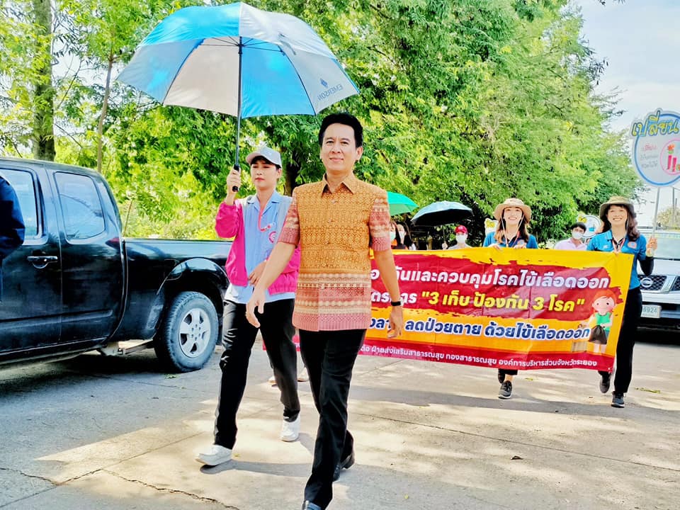 วันที่ 17 สิงหาคม 2566 กองสาธารณสุข อบจ.ระยอง ร่วมกับโรงพยาบาลส่งเสริมสุขภาพตำบลบ้านห้วยปราบ โรงพยาบาลส่งเสริมสุขภาพตำบลบ้านมาบยางพร สาธารณสุขอำเภอปลวกแดง สาธารณสุขจังหวัดระยอง ร่วมเดินรณรงค์การป้องกันและควบคุมโรคไข้เลือดออก พร้อมทั้งแจกอุปกรณ์และเคมีภัณฑ์ในการควบคุมยุงลาย ณ โรงเรียนบ้านมาบยางพร อำเภอปลวกแดง จังหวัดระยอง โดยมีนายสกนธ์ กรกฎ นายอำเภอปลวกแดง เป็นประธานเปิดโครงการดังกล่าว