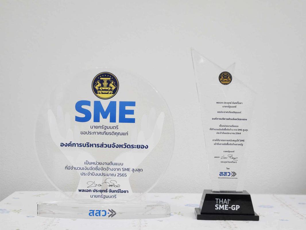 องค์การบริหารส่วนจังหวัดระยองรับมอบโล่ประกาศเกียรติคุณสำหรับหน่วยงานที่มีการจัดซื้อจัดจ้าง SME สูงสุดเป็นครั้งที่ 2 ติดต่อกันในงาน SME – GP DAY รัฐพร้อมซื้อ SME พร้อมขาย