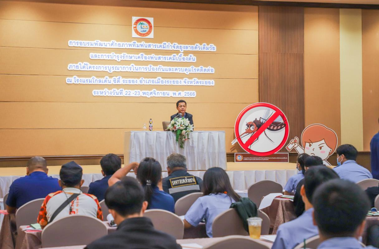 วันที่ 22 พฤศจิกายน 2566 เวลา 09.00 น. นายกิตติ เกียรติ์มนตรี รองนายกองค์การบริหารส่วนจังหวัดระยอง(1) เป็นประธานเปิดโครงการ “การอบรมพัฒนาศักยภาพทีมพ่นสารเคมีกำจัดยุงลายตัวเต็มวัยและการบำรุงรักษาเครื่องพ่นสารเคมีเบื้องต้น”ภายใต้ โครงการบูรณาการในการป้องกันและควบคุมโรคติดต่อ ณ โรงแรมโกลเด้น ซิตี้ ระยอง โดยมีนายชัยวัฒน์ จัตตุพร เลขานุการนายกฯ เป็นผู้กล่าวถึงวัตถุประสงค์ของการจัดโครงการ พร้อมด้วยนายสุริยะ ศิริวัฒน์ รก.ผอ.กองสาธารณสุข และเจ้าหน้าที่ที่เกี่ยวข้องเข้าร่วมพิธีเปิดโครงการดังกล่าว โดยมีผู้เข้าร่วมการอบรมจำนวน 180 คน ประกอบด้วย บุคลากรโรงพยาบาลส่งเสริมสุขภาพตำบลสังกัดองค์การบริหารส่วนจังหวัดระยอง บุคลากรสังกัดองค์การปกครองส่วนท้องถิ่น และภาคีเครือข่ายที่เกี่ยวข้อง ซึ่งได้รับความอนุเคราะห์วิทยากรในการบรรยายและวิทยากรกลุ่ม จากศูนย์ควบคุมโรคติดต่อนำโดยแมลง สำนักงานป้องกันควบคุมโรคที่ 6 ชลบุรี และสำนักงานสาธารณสุขจังหวัดระยอง โดยนายกิตติ เกียรติ์มนตรี กล่าวว่า “ อบจ.ระยอง ได้จัดกิจกรรมเพื่อพัฒนาบุคลากรทางด้านสาธารณสุข ในสังกัดอบจ.ระยอง ทั้งในสำนักงาน โรงเรียน และบุคลากรสาธารณสุขที่รับถ่ายโอนมาจากโรงพยาบาลส่งเสริมสุขภาพตำบล (รพ.สต.) ซึ่งเป็นหน่วยบริการที่มีความใกล้ชิดกับประชาชน รวมทั้งภาคีเครือข่าย เช่น องค์กรปกครองส่วนท้องถิ่น ซึ่งการควบคุมโรคไข้เลือดออกแต่ละพื้นที่ เป็นการดำเนินงานร่วมกันระหว่างโรงพยาบาลส่งเสริมสุขภาพตำบลและ อปท. ให้มีความรู้ ความเข้าใจ เกี่ยวกับยุง โรคติดต่อนำโดยยุงลาย การป้องกันควบคุมโรค การใช้งานเครื่องพ่นสารเคมีตามวิธีที่ถูกต้องได้ และสามารถซ่อมบำรุงเครื่องพ่นสารเคมีในเบื้องต้นได้ ตลอดจนสามารถนำความรู้ที่ได้รับเป็นแนวทางในการดำเนินงานป้องกันและควบคุมโรคติดต่อ เพื่อให้ประชาชนในพื้นที่ห่างไกลจากโรคไข้เลือดออก”