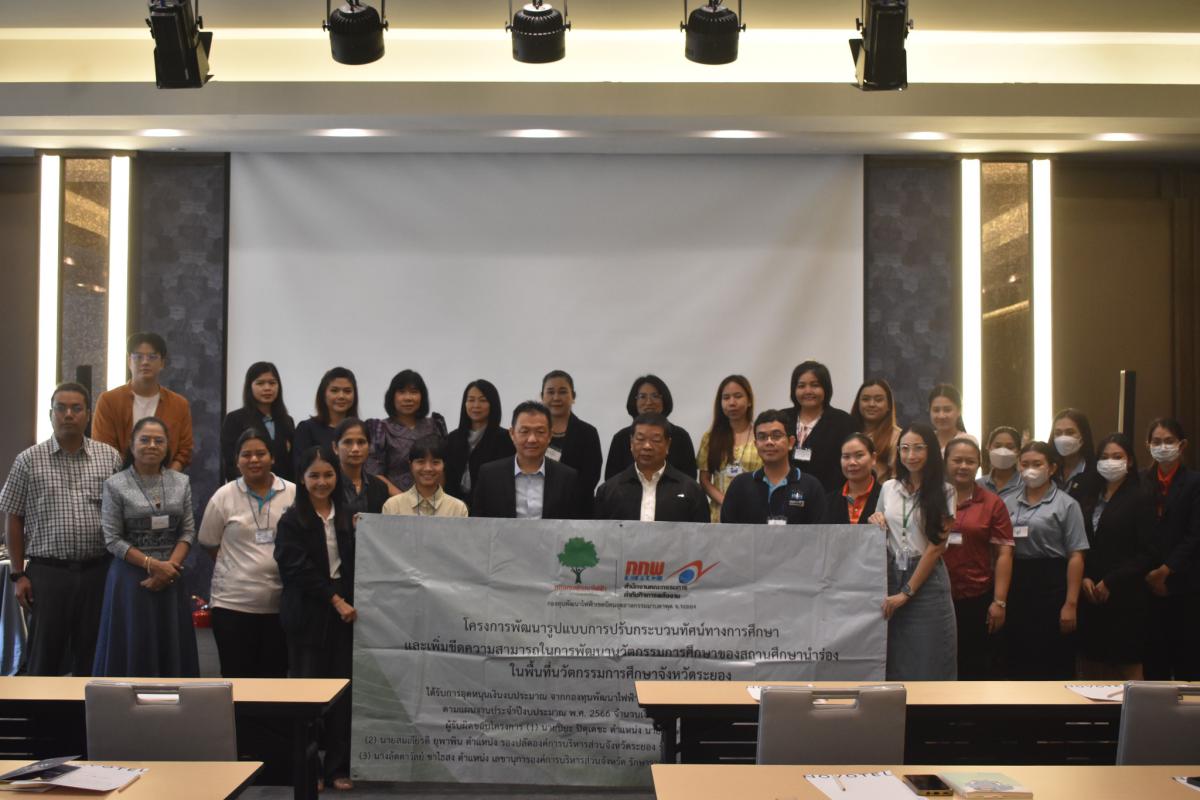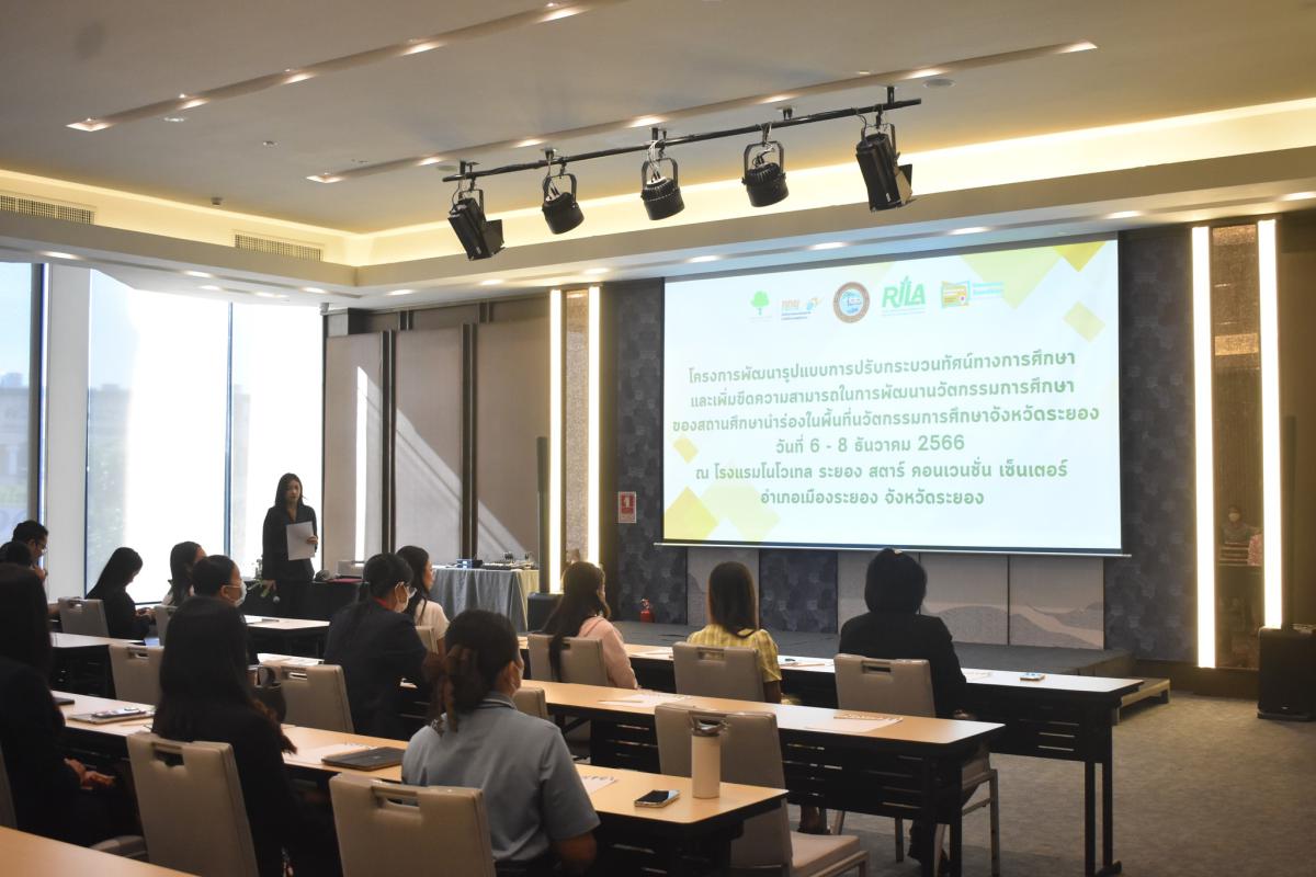 วันที่ 6-8 ธันวาคม 2566 กองการศึกษา ศาสนา และวัฒนธรรม ได้จัดโครงการพัฒนารูปแบบการปรับกระบวนทัศน์ทางการศึกษาและเพิ่มขีดความสามารถในการพัฒนานวัตกรรมการศึกษาของสถานศึกษานำร่องในพื้นที่นวัตกรรมการศึกษาจังหวัดระยอง โดยมีนายธงชัย มั่นคง ผู้ช่วยผู้อำนวยการสถาบันการเรียนรู้ของคนทุกช่วงวัยจังหวัดระยอง (RILA) ผู้เชี่ยวชาญด้านการศึกษา ศาสนา และวัฒนธรรม อบจ.ระยอง เป็นประธานเปิดโครงการดังกล่าวและได้รับเกียรติจากรองศาสตราจารย์สิทธิชัย วิชัยดิษฐ์ พร้อมด้วยคณะวิทยาการการเรียนรู้และศึกษาศาสตร์ มหาวิทยาลัยธรรมศาสตร์ มาเป็นวิทยากรบรรยายให้ความรู้พร้อมทำกิจกรรมตลอดการอบรม ซึ่งโครงการฯนี้มีวัตถุประสงค์เพื่อเพิ่มขีดความสามารถในการพัฒนานวัตกรรมการศึกษาของสถานศึกษานำร่องในพื้นที่นวัตกรรมการศึกษาจังหวัดระยอง และผู้เข้าร่วมประชุมปฏิบัติการจำนวน 30 คน จากสถานศึกษานำร่องพื้นที่นวัตกรรมทุกสังกัด จำนวน 10 โรงเรียน โดยใช้เวลาในการประชุมปฏิบัติจำนวน 3 วัน 2 คืน ณ โรงแรมโรงแรมโนโวเทล ระยอง สตาร์ คอนเวนชั่น เซ็นเตอร์ อำเภอเมือง จังหวัดระยอง