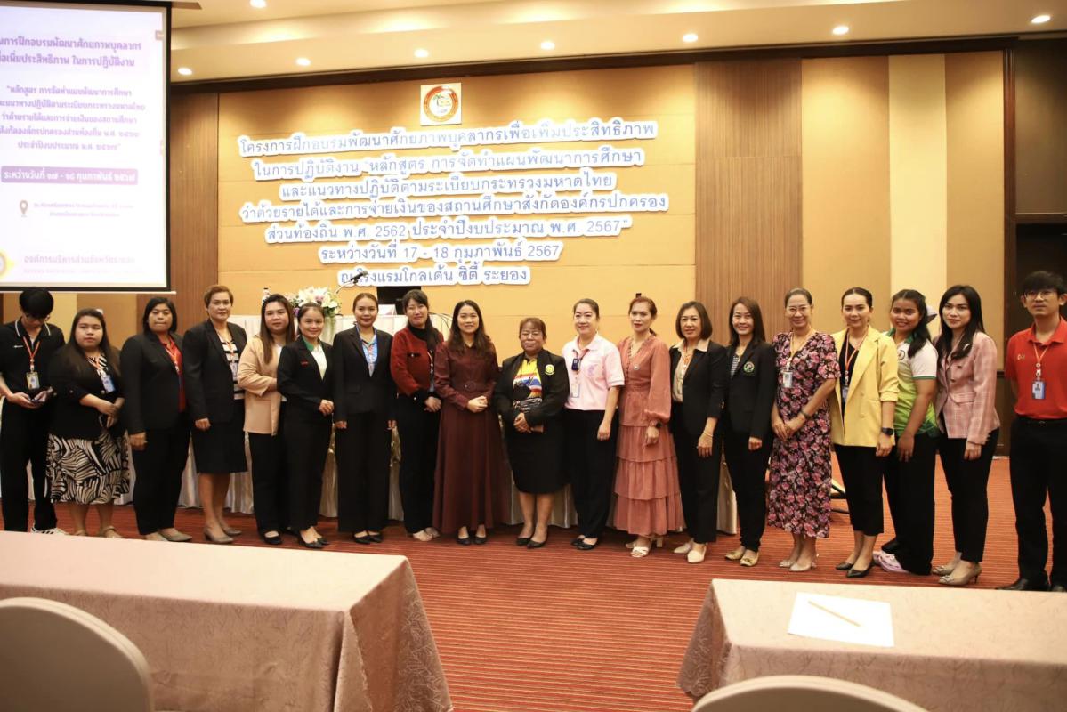 วันที่ 18 กุมภาพันธ์ 2567 เวลา 09.00 น. องค์การบริหารส่วนจังหวัดระยองได้จัดโครงการฝึกอบรมพัฒนาศักยภาพบุคลากรเพื่อเพิ่มประสิทธิภาพในการปฏิบัติงาน “หลักสูตร การจัดทำแผนพัฒนาการศึกษาและแนวทางปฏิบัติตามระเบียบกระทรวงมหาดไทยว่าด้วยรายได้และการจ่ายเงินของสถานศึกษาสังกัดองค์กรปกครองส่วนท้องถิ่น พ.ศ. 2562 ประจำปีงบประมาณ พ.ศ. 2567“ โดยมีวัตถุประสงค์ เพื่อเพิ่มพูนความรู้และสร้างความเข้าใจเกี่ยวกับการจัดทำแผนพัฒนาการศึกษา เทคนิคและวิธีการเขียนโครงการ การใช้จ่ายเงินรายได้ของสถานศึกษา และระเบียบที่เกี่ยวข้องได้อย่างถูกต้องตามระเบียบกฎหมายที่กำหนด ซึ่งได้รับเกียรติจากนางสาวพีระนุช พิมพ์บุตร วิทยากรเครือข่ายการจัดแผนและงบประมาณทางการศึกษาขององค์กรปกครองส่วนท้องถิ่น กรมส่งเสริมการปกครองส่วนท้องถิ่น กระทรวงมหาดไทย เป็นวิทยากรบรรยายให้ความรู้ ณ โรงแรมโกลเด้น ซิตี้ ระยอง
