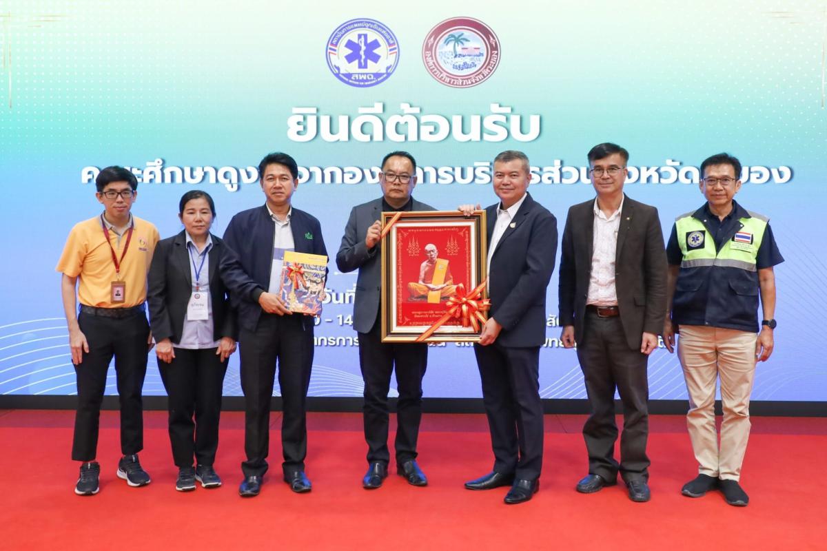 วันที่ 26 มีนาคม 2567 เวลา 09.00 น. นายสมเกียรติ ยุพาพิน รองปลัดองค์การบริหารส่วนจังหวัดระยอง พร้อมด้วย นายไพฑูรย์ รัตนพรวารีสกุล สมาชิกสภาองค์การบริหารส่วนจังหวัดระยอง เขต 7 อ.เมืองระยอง นำคณะผู้เข้าร่วม “โครงการศึกษาดูงานเพื่อพัฒนาศักยภาพเครือข่าย ศูนย์รับแจ้งเหตุและจ่ายงานการแพทย์ฉุกเฉิน (1669) องค์การบริหารส่วนจังหวัดระยอง” จำนวน 110 คน เข้าศึกษาดูงาน ณ ศูนย์บริการการแพทย์ฉุกเฉินกรุงเทพมหานคร (ศูนย์เอราวัณ) โดยมี พญ.ธันยา ปิติยะกุลชร และเจ้าหน้าที่ร่วมให้การต้อนรับ โดยได้เข้าดูงานด้านการบริหารจัดการศูนย์ และการรับแจ้งเหตุและจ่ายงาน ซึ่งศูนย์บริการการแพทย์ฉุกเฉินกรุงเทพมหานคร (ศูนย์เอราวัณ) สังกัดสำนักการแพทย์ กรุงเทพมหานคร เป็นศูนย์กลางในการประสานความช่วยเหลือด้านการแพทย์ในภาวะฉุกเฉินทุกประเภท รวมทั้งบริการรถพยาบาลฉุกเฉินพร้อมทีมกู้ชีพในระดับต่างๆ เพื่อให้ความช่วยเหลือและลำเลียงผู้บาดเจ็บและผู้ป่วยไปยังสถานพยาบาลที่เหมาะสม นอกจากนั้นยังเป็นศูนย์ข้อมูลข่าวสารทางด้านการแพทย์ประเภท Hotline ที่เรียกว่า “สายด่วนกู้ใจ” ซึ่งรับให้คำปรึกษาปัญหาคลายเครียด ให้บริการตลอด 24 ชั่วโมงอีกด้วย และในช่วงบ่ายคณะได้เดินทางไปศึกษาดูงาน ณ สถาบันการแพทย์ฉุกเฉินแห่งชาติ (สพฉ.) จังหวัดนนทบุรี โดยมี เรืออากาศเอก นพ.อัจฉริยะ แพงมา เลขาธิการ สพฉ. และเจ้าหน้าที่ร่วมให้การต้อนรับ พร้อมทั้งบรรยายให้ความรู้และนำคณะฯเข้าศึกษาดูงานการแพทย์ฉุกเฉินที่เป็นต้นแบบการดำเนินงาน การรับแจ้งเหตุและจ่ายงานการแพทย์ฉุกเฉิน ซึ่งได้ร่วมแลกเปลี่ยนเรียนรู้นวัตกรรมทางการแพทย์ฉุกเฉิน เครื่องมือในการปฏิบัติหน้าที่ รวมทั้งการรับแจ้งเหตุในกรณีต่างๆ พร้อมทั้งสรุปประเด็นปัญหาและการแก้ไขปัญหาเฉพาะหน้า ทบทวนแนวปฏิบัติ และกระบวนการรับแจ้งเหตุและจ่ายงาน สามารถนำมาประยุกต์ใช้กับภาคีเครือข่ายและศูนย์จ่ายงานจังหวัดระยอง โดยมีนายแพทย์ภคพล เอี่ยมไพบูลย์พันธ์ หัวหน้ากลุ่มงานเวชศาสตร์ฉุกเฉิน โรงพยาบาลระยอง และทีมแพทย์เวชศาสตร์ฉุกเฉิน ร่วมเป็นวิทยากรบรรยายให้ความรู้แก่ผู้เข้าร่วมโครงการในครั้งนี้ด้วย