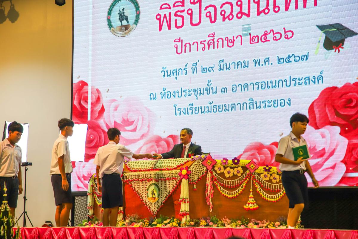 พิธีปัจฉิมนิเทศและมอบประกาศนียบัตร นักเรียนระดับชั้นมัธยมศึกษาปีที่ 3 ปีการศึกษา 2566 โรงเรียนมัธยมตากสินระยอง